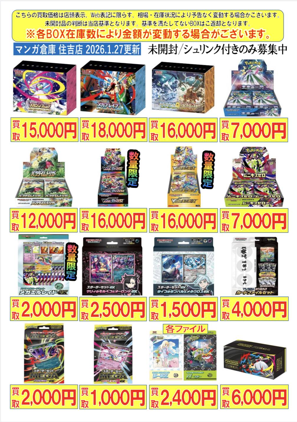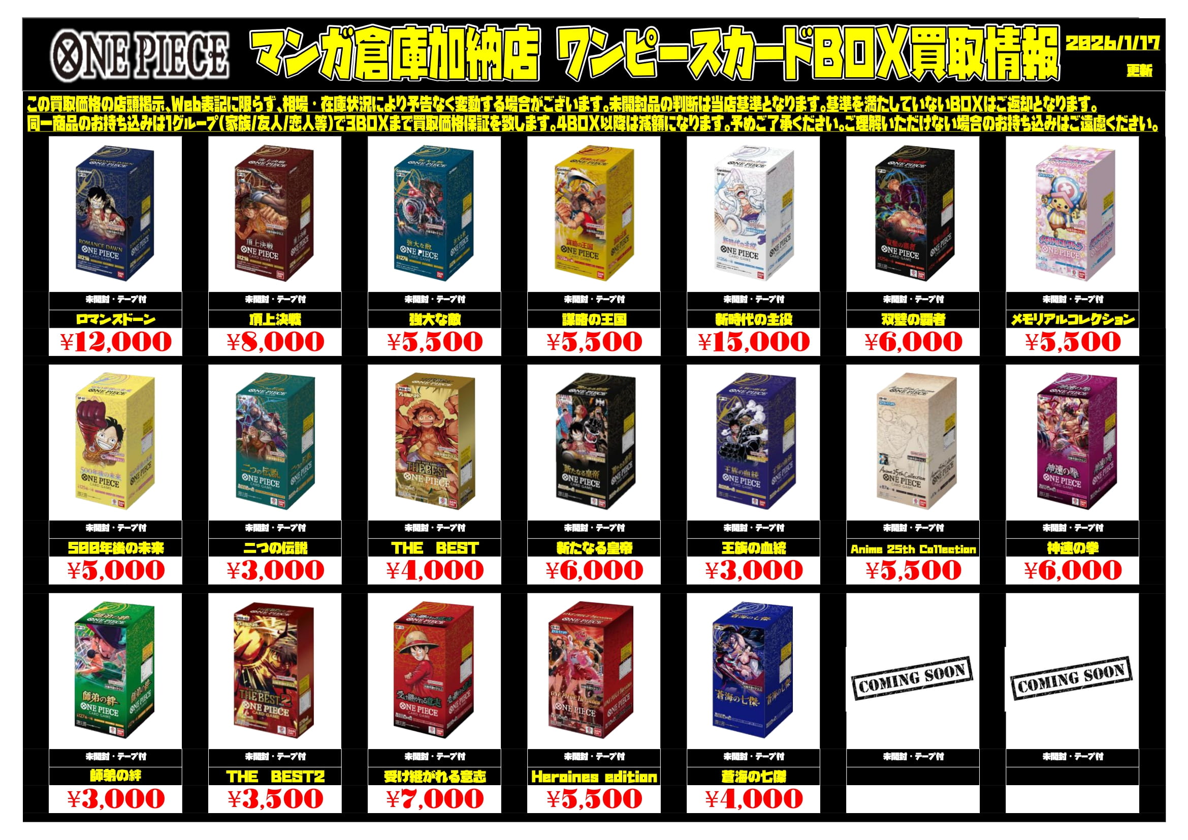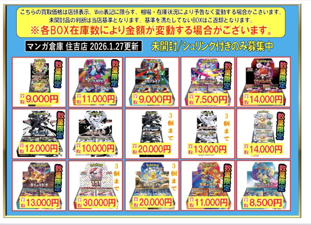 2026/1/23 更新 【加納店/住吉買取店】**************** 準備中・・・ 【住吉店】********************* 【加納店】********************* ★ワンピカードゲーム★ ★ポケモンカードゲーム★ ★ドラゴンボールスーパーダイバーズ★ 準備中