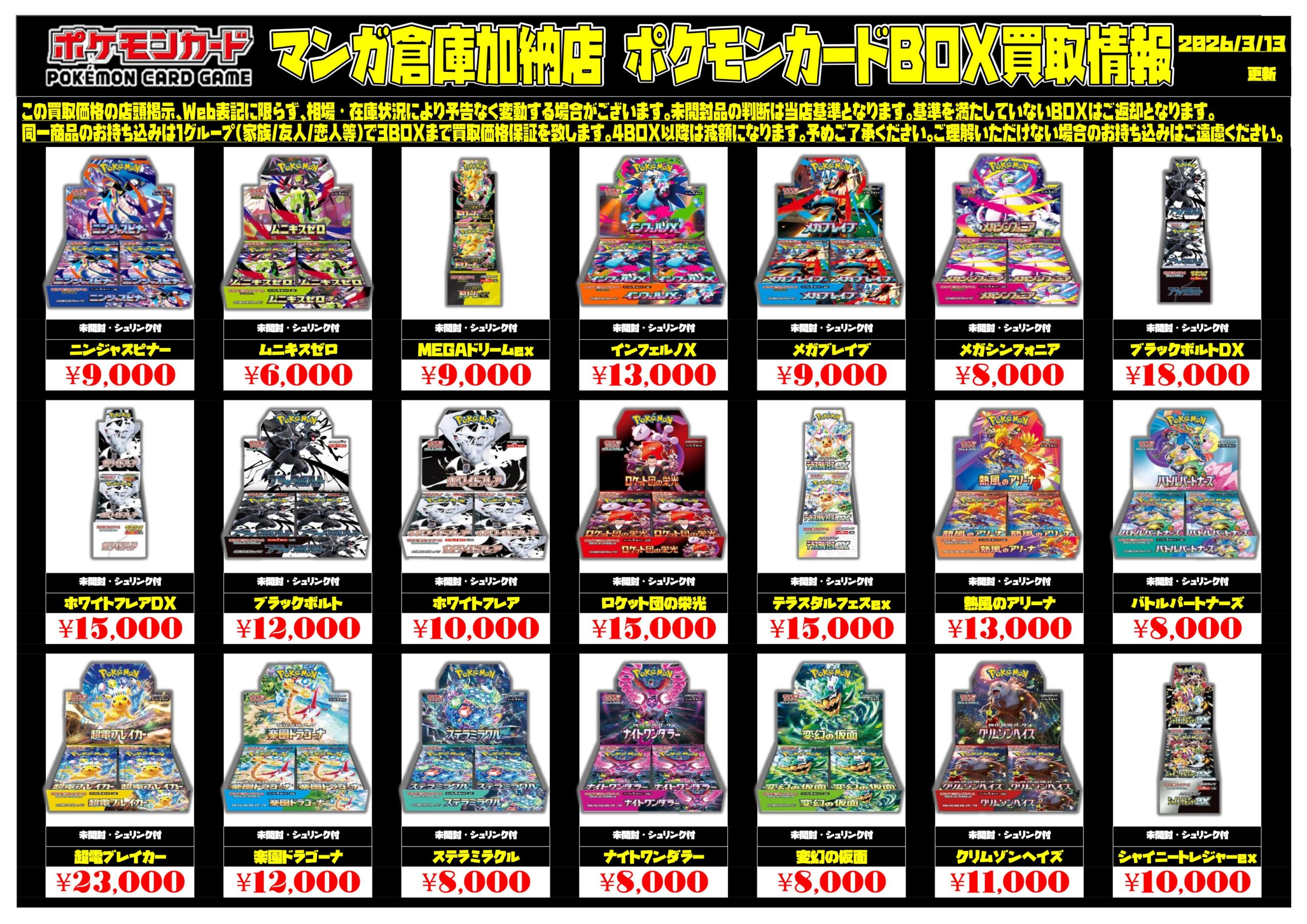 2026/3/13 更新★ 【加納店/住吉買取店】**************** 準備中・・・ 【住吉店】********************* 【加納店】********************* ★ワンピカードゲーム★ ★ポケモンカードゲーム★ ★ドラゴンボールスーパーダイバーズ★ 準備中