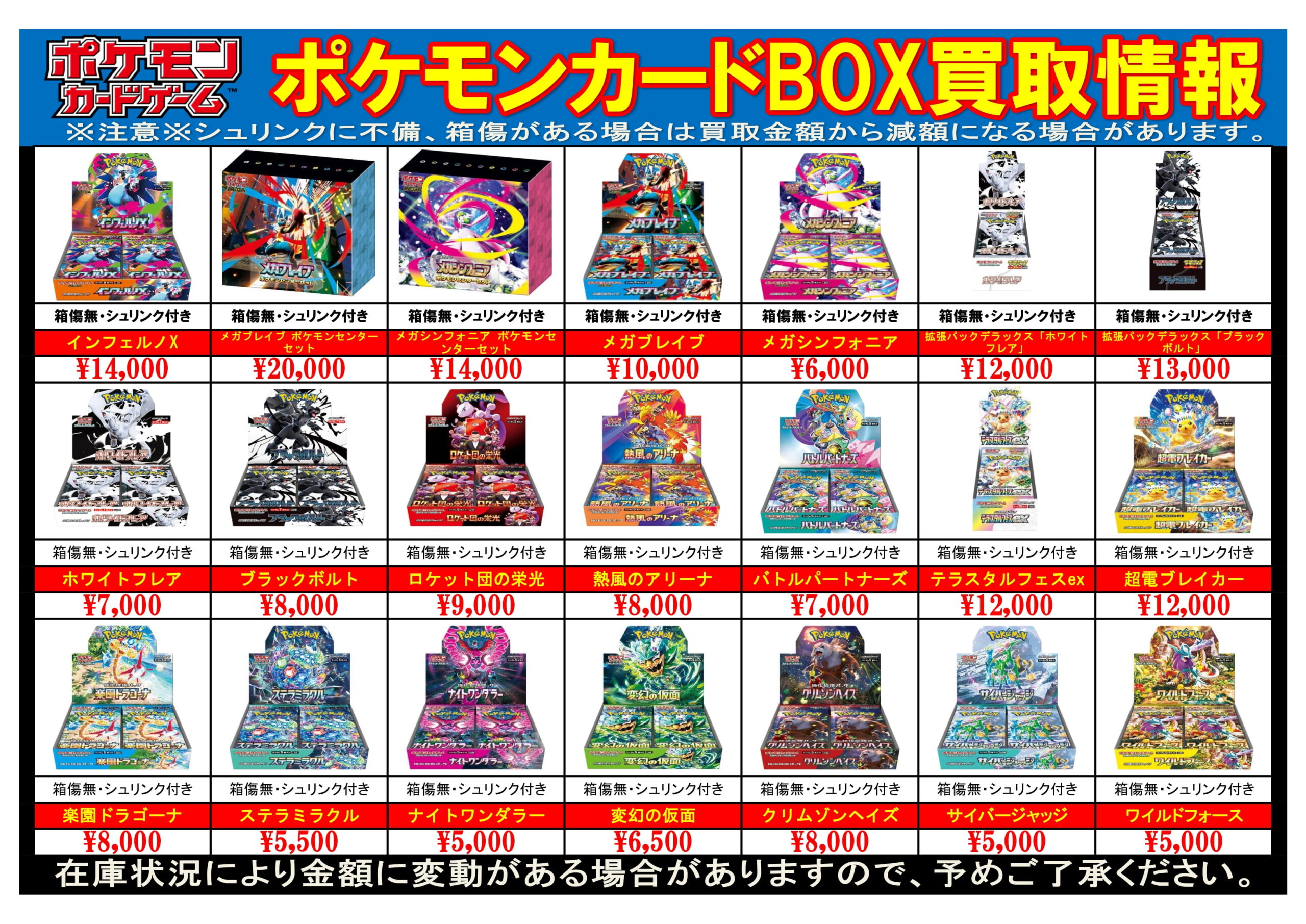 | プレミアムトレーナーBOX MEGA | 4521329374635 | ¥6,000 | 状態等により減額になる場合がありますので予めご了承ください。 |