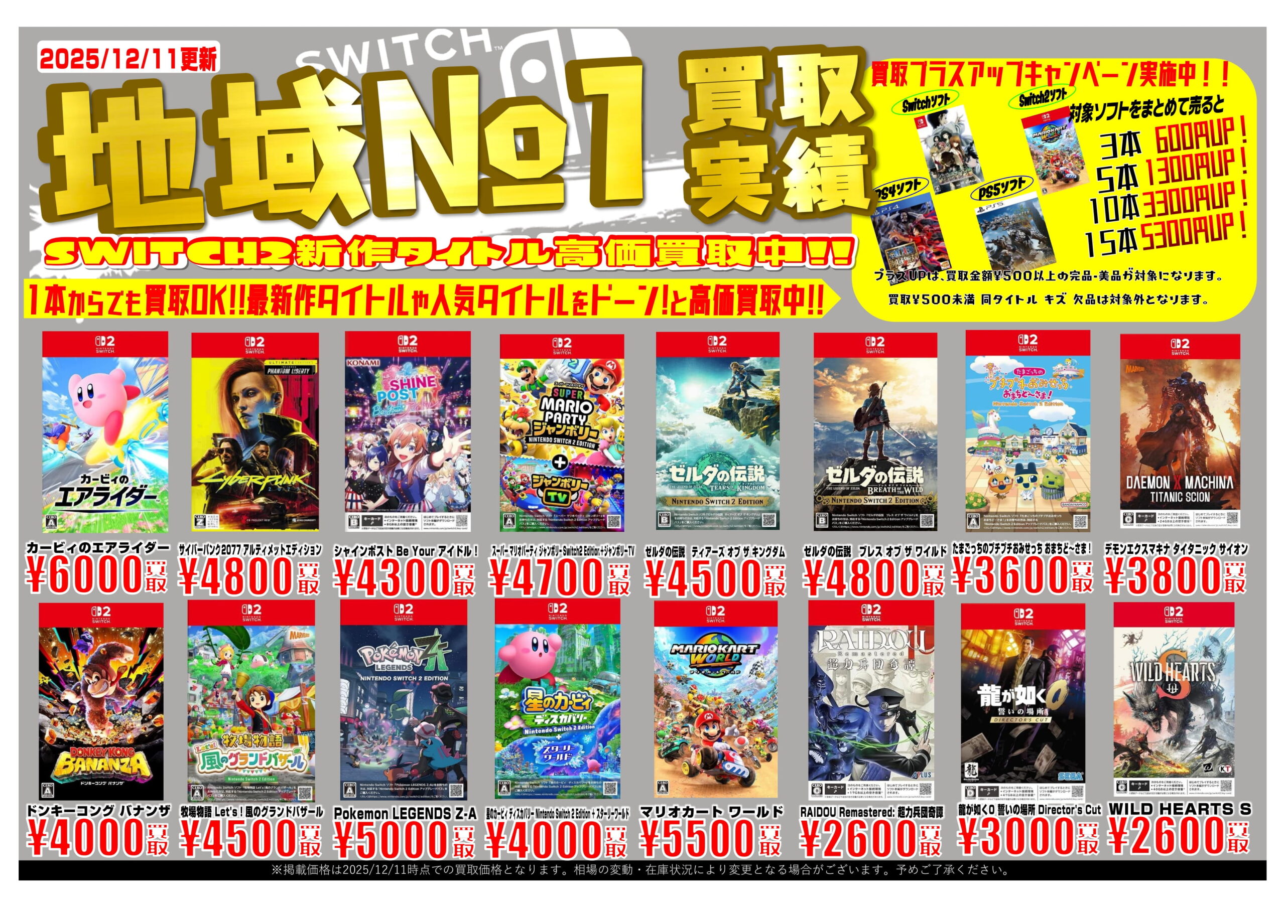 | 買取価格は店頭査定にて相場や在庫数により変更になる場合がございます。 | ||||
