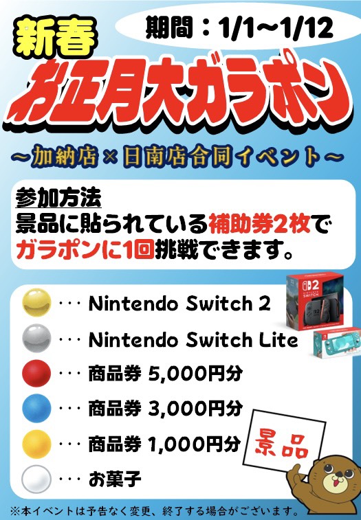 アジェンダ アジェンダ 日 月 週 1月 2026 1月 2026 すべて閉じる すべて開く 1月 11 日 【都城店】コミックコーナーセール チケット 1月 11 終日 1月 12 月 【4店合同】新春富くじ チケット 1月 12 終日 【日南店|加納店】新春 お正月大ガラポン〜加納・日南を添えて〜 チケット 1月 12 終日 【都城店】コミックコーナーセール チケット 1月 12 終日 1月 13 火 【4店合同】新春富くじ チケット 1月 13 終日 【都城店】コミックコーナーセール チケット 1月 13 終日 1月 14 水 【4店合同】新春富くじ チケット 1月 14 終日 1月 15 木 【4店合同】新春富くじ チケット 1月 15 終日 1月 16 金 【4店合同】新春富くじ チケット 1月 16 終日 1月 17 土 【4店合同】新春富くじ チケット 1月 17 終日 1月 18 日 【4店合同】新春富くじ チケット 1月 18 終日 1月 19 月 【4店合同】新春富くじ チケット 1月 19 終日 1月 20 火 【4店合同】新春富くじ チケット 1月 20 終日 1月 21 水 【4店合同】新春富くじ チケット 1月 21 終日 1月 22 木 【4店合同】新春富くじ チケット 1月 22 終日 1月 23 金 【4店合同】新春富くじ チケット 1月 23 終日 1月 24 土 【4店合同】新春富くじ チケット 1月 24 終日 1月 25 日 【4店合同】新春富くじ チケット 1月 25 終日 1月 26 月 【4店合同】新春富くじ チケット 1月 26 終日 1月 27 火 【4店合同】新春富くじ チケット 1月 27 終日 1月 28 水 【4店合同】新春富くじ チケット 1月 28 終日 1月 29 木 【4店合同】新春富くじ チケット 1月 29 終日 1月 30 金 【4店合同】新春富くじ チケット 1月 30 終日 1月 31 土 【4店合同】新春富くじ チケット 1月 31 終日 1月 2026 1月 2026 購読 Timely カレンダーに追加 Google に追加 Outlook に追加 Apple カレンダーに追加 他のカレンダーに追加 XML ファイルとしてエクスポート