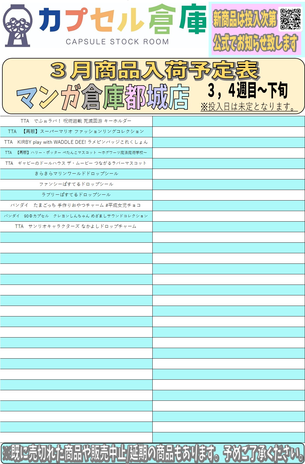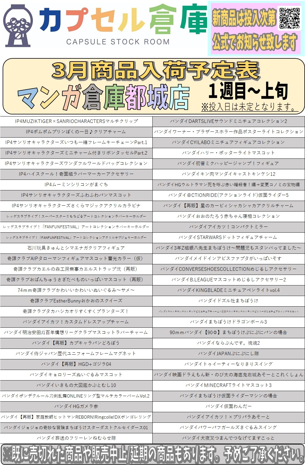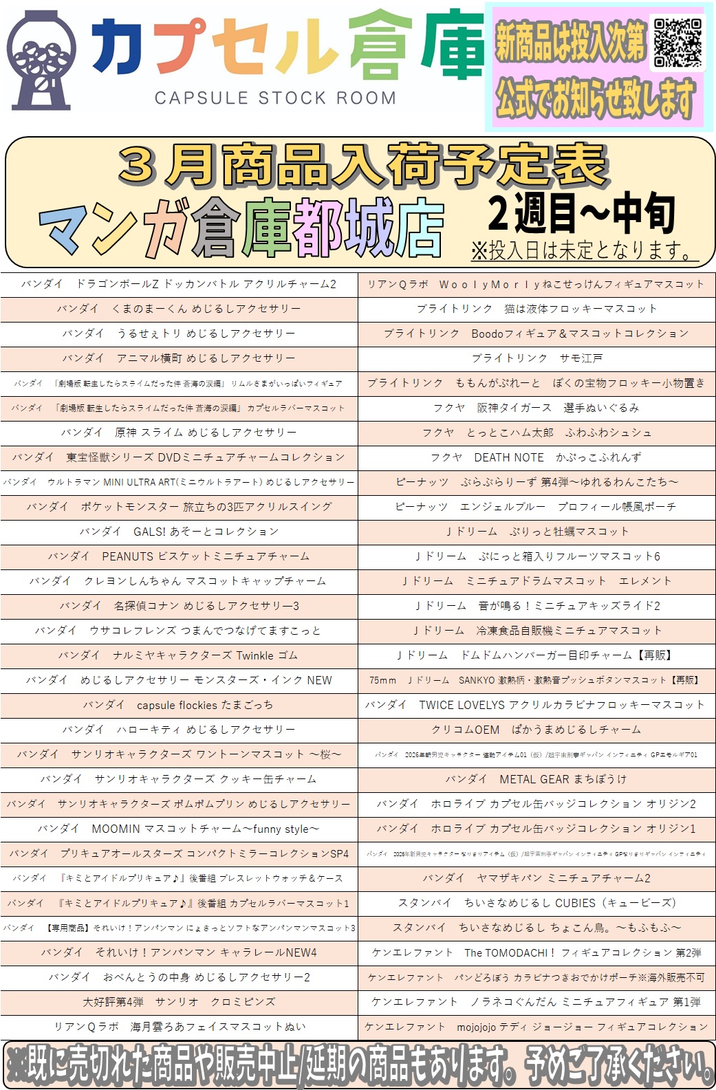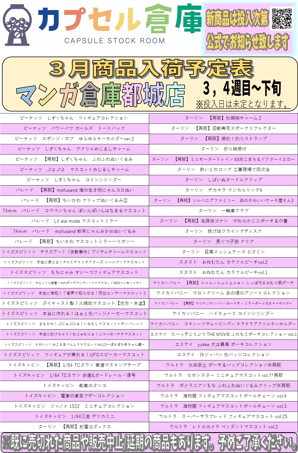 【都城店】カプセルトイ入荷情報