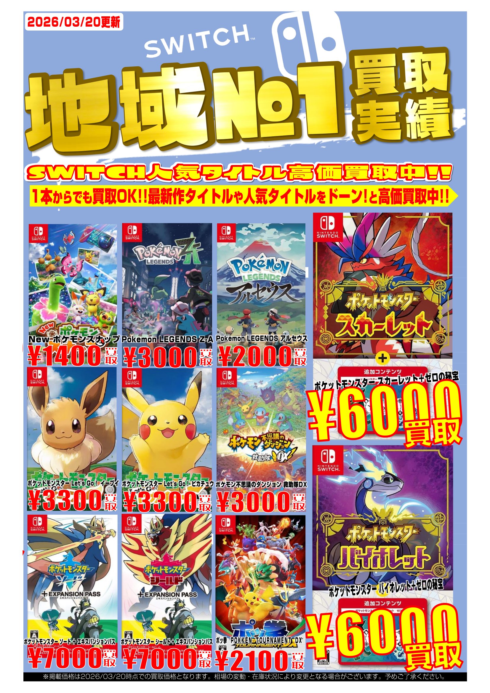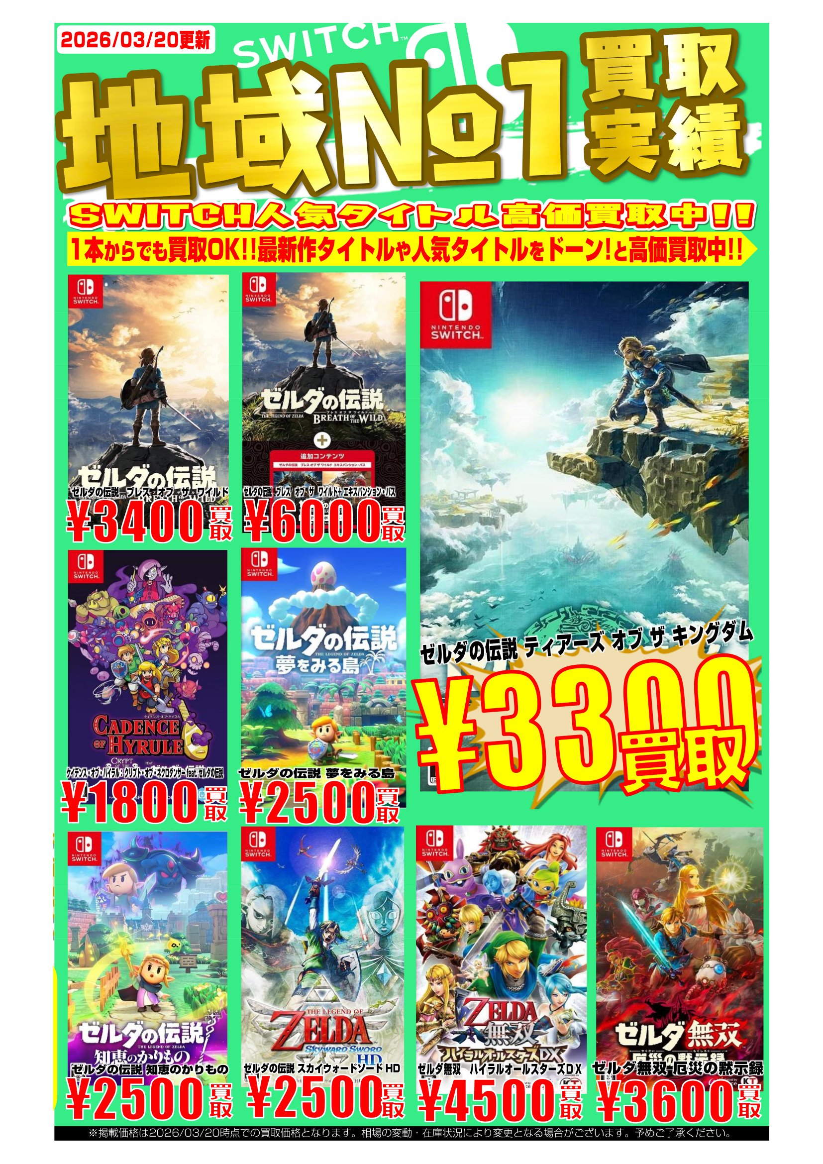| 買取価格は店頭査定にて相場や在庫数により変更になる場合がございます。 | ||||