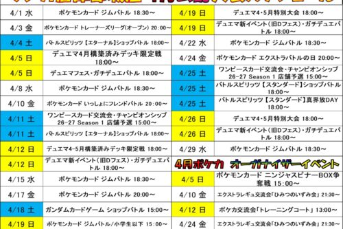 【都城店】🌟4月のカード大会予定表🌟