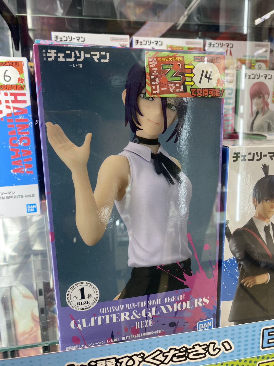 【都城店】チェンソーマンガチャ マンガ倉庫都城店 ガチャ 2025年12月20日 チャンソーマンガチャに景品追加致しました! 大人気レゼ編A賞フィギュアレゼさらにglitter & glamoursレゼが当たるチャンスです! みなさまの挑戦お待ちしてます!