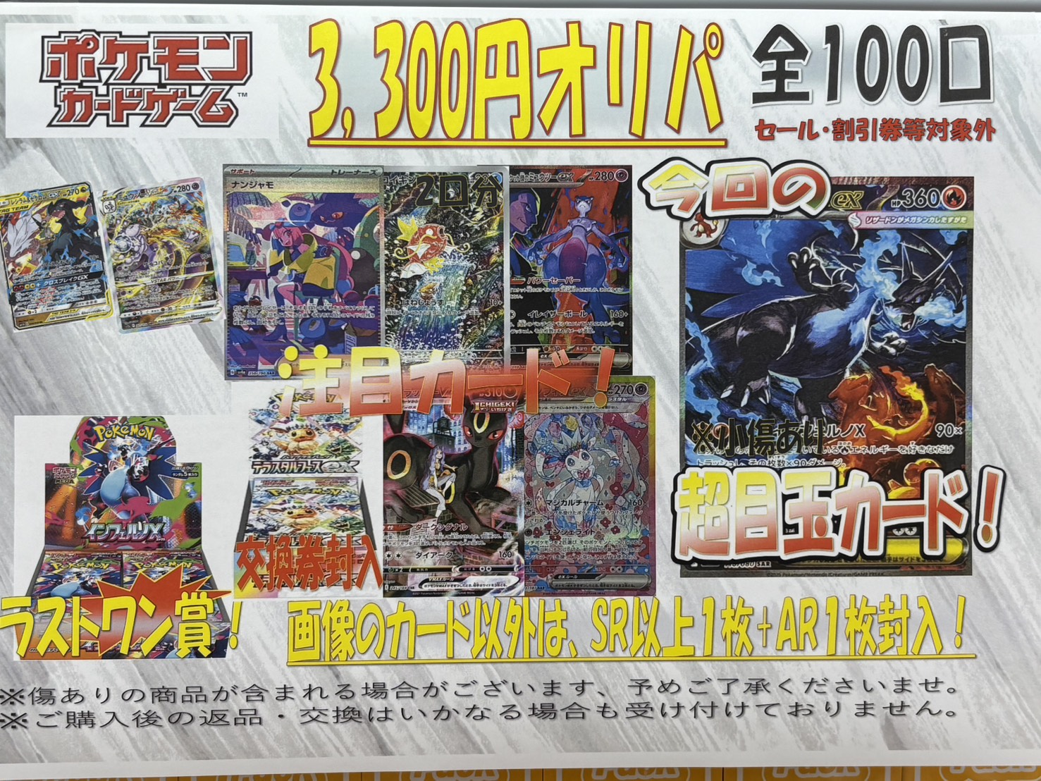 【住吉買取店】ポケモンカード3,300円オリパ展開中です✨ マンガ倉庫住吉買取店 トレカ 2025年10月19日 ポケモンカード3,300円オリパ展開中です✨ なんと今回の目玉カードはただいま人気超上昇中の ✨メガリザードンXex SAR✨ そのほかにも価格高騰中のカード盛りだくさん! 是非運試しに🔥🔥