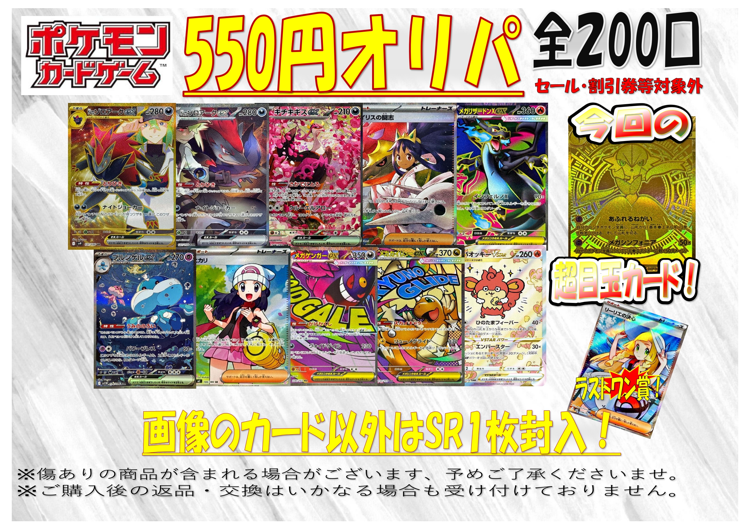 【住吉買取店】ポケモンカード550円オリパ販売開始! マンガ倉庫住吉買取店 トレカ 2025年12月2日 住吉店 ポケモンカード550円オリパ販売開始! トップはMURのメガサーナイトex!! 新弾のカードも使用していますのでプレイヤーさんにもコレクターさんにもおすすめです! 運試しにいかがでしょうか! ご来店お待ちしております🔥🔥