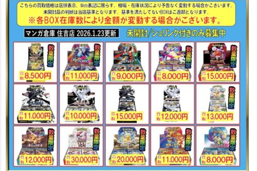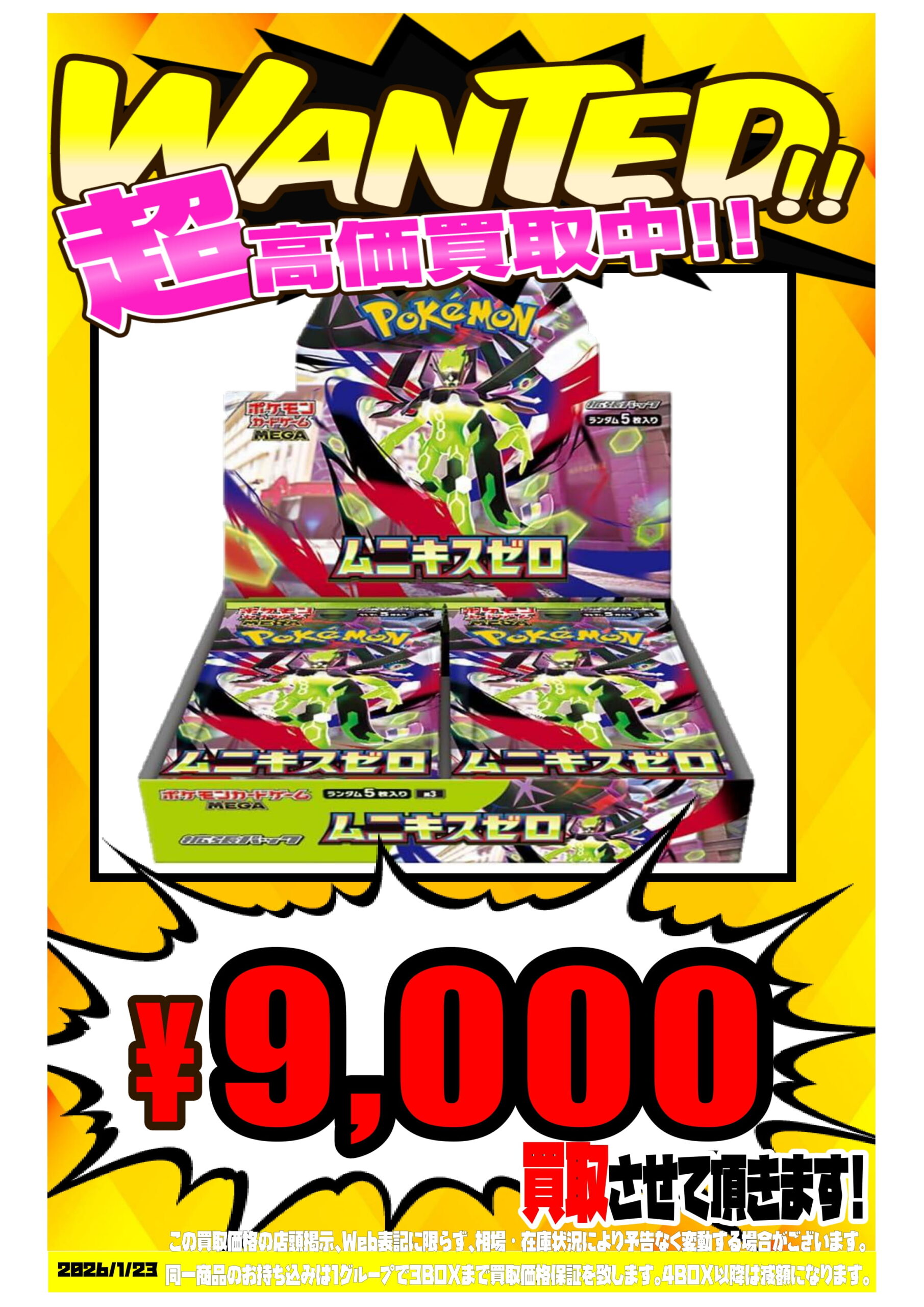 【加納店】ポケモンカード 最新弾 ムニキスゼロ BOX 買取保証 new 買取情報 マンガ倉庫加納店 トレカ 2026年1月23日 加納店 ポケモンカード 最新弾 ムニキスゼロ BOX 買取保証 ※2026/1/23 現在の価格となります。 在庫状況・状態によってお値段が変動いたします。予めご了承ください。