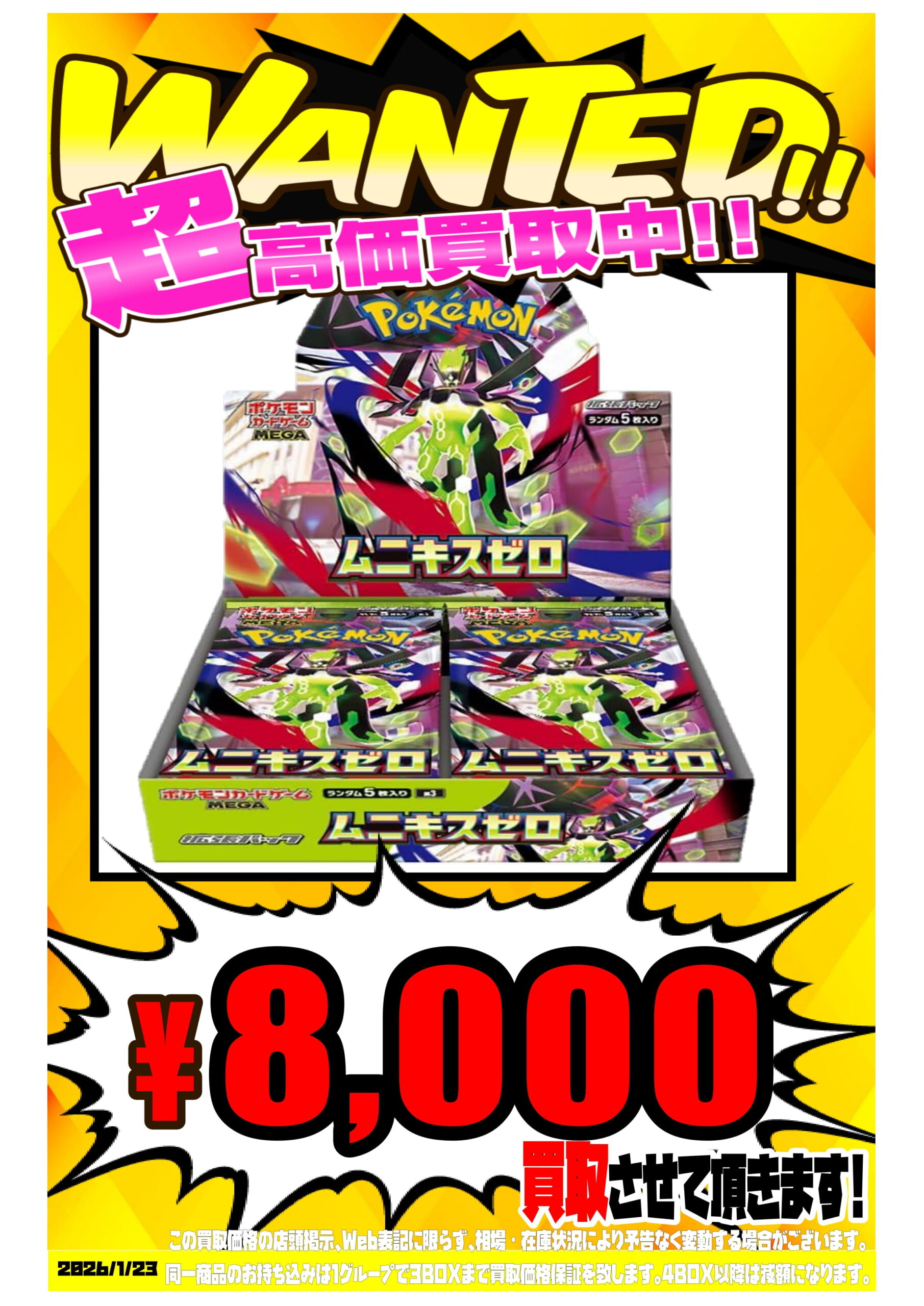 【加納店】ポケモンカード 最新弾 ムニキスゼロ BOX 買取保証 更新 new 買取情報 マンガ倉庫加納店 トレカ 2026年1月23日 加納店 ポケモンカード 最新弾 ムニキスゼロ BOX 買取保証 更新 ※2026/1/23 現在の価格となります。 在庫状況・状態によってお値段が変動いたします。予めご了承ください。