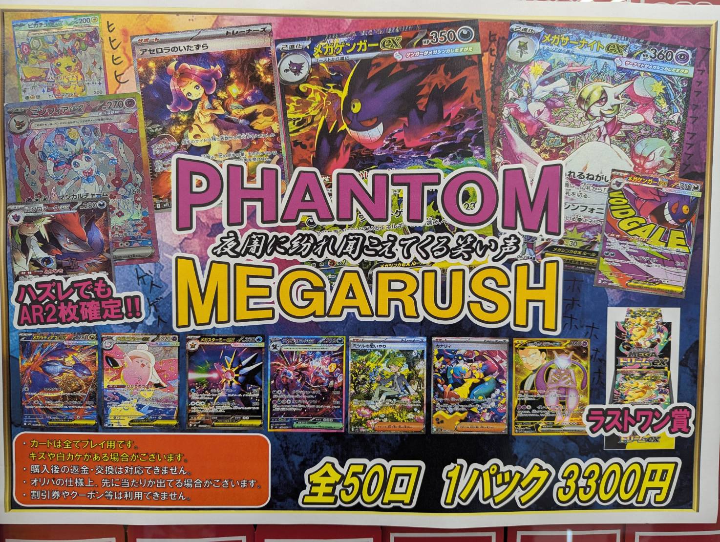 【住吉買取店】ポケモンカード 全50口 1パック3300円 PHANTOM MEGARUSH 販売スタート致しました。 マンガ倉庫住吉買取店 トレカ 2026年3月3日 ポケモンカード 全50口 1パック3300円 PHANTOM MEGARUSH 販売スタート致しました。