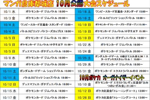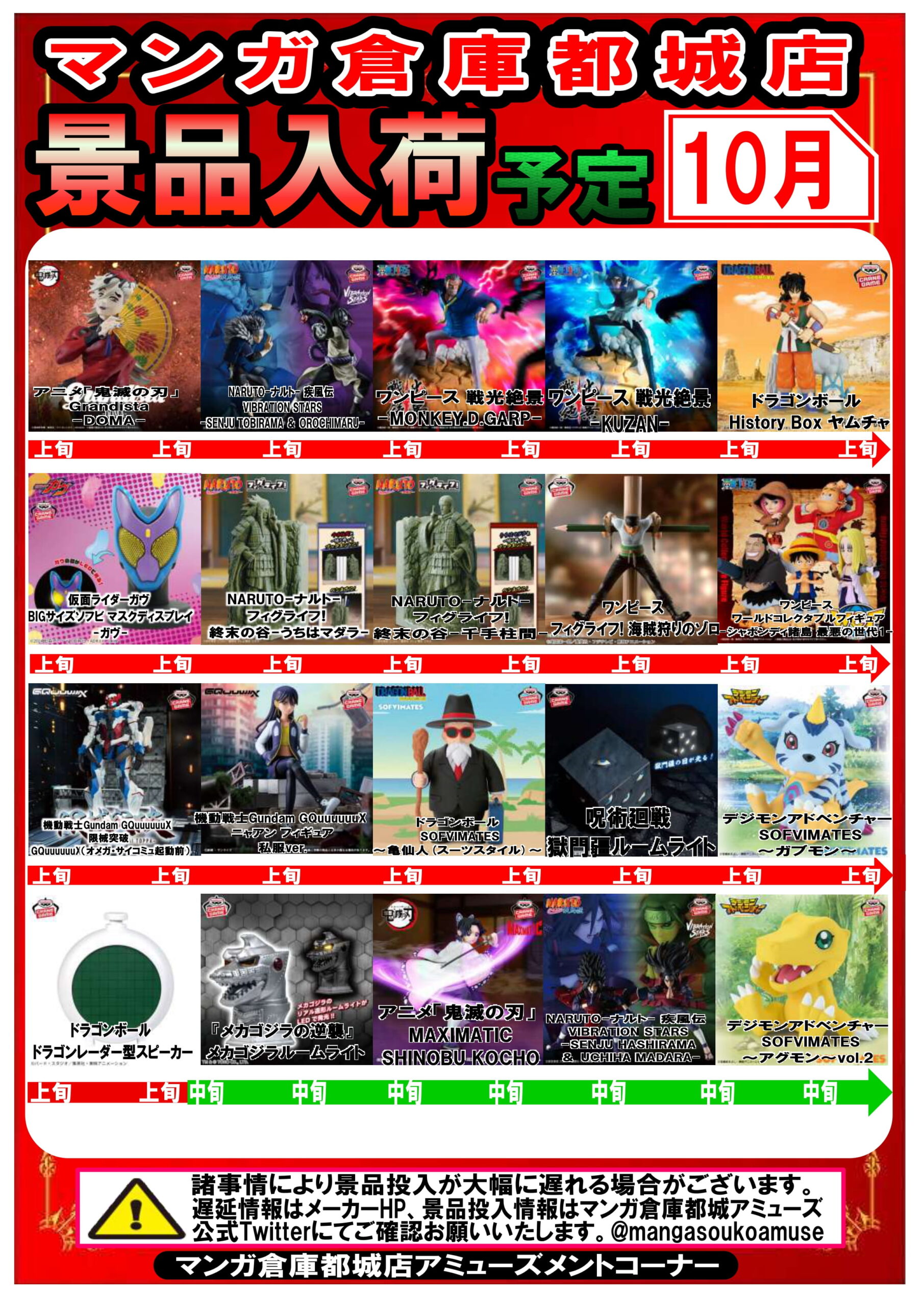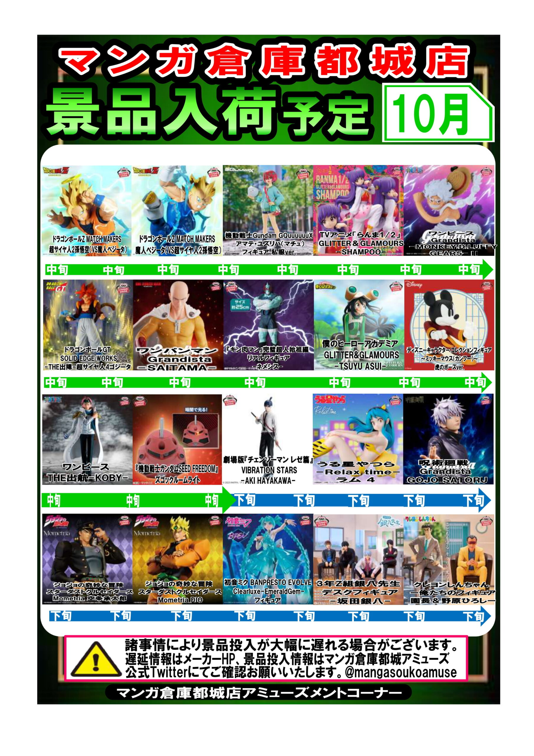 【都城店】★アミューズ★〈景品入荷予定〉10月入荷分更新しました! new 新着情報 マンガ倉庫都城店 アミューズ 2025年10月2日 10月入荷予定のアミューズ景品一覧更新しました👍💥 ぜひご覧くださ~い!!! ★イベントカレンダーは👉こちら★
