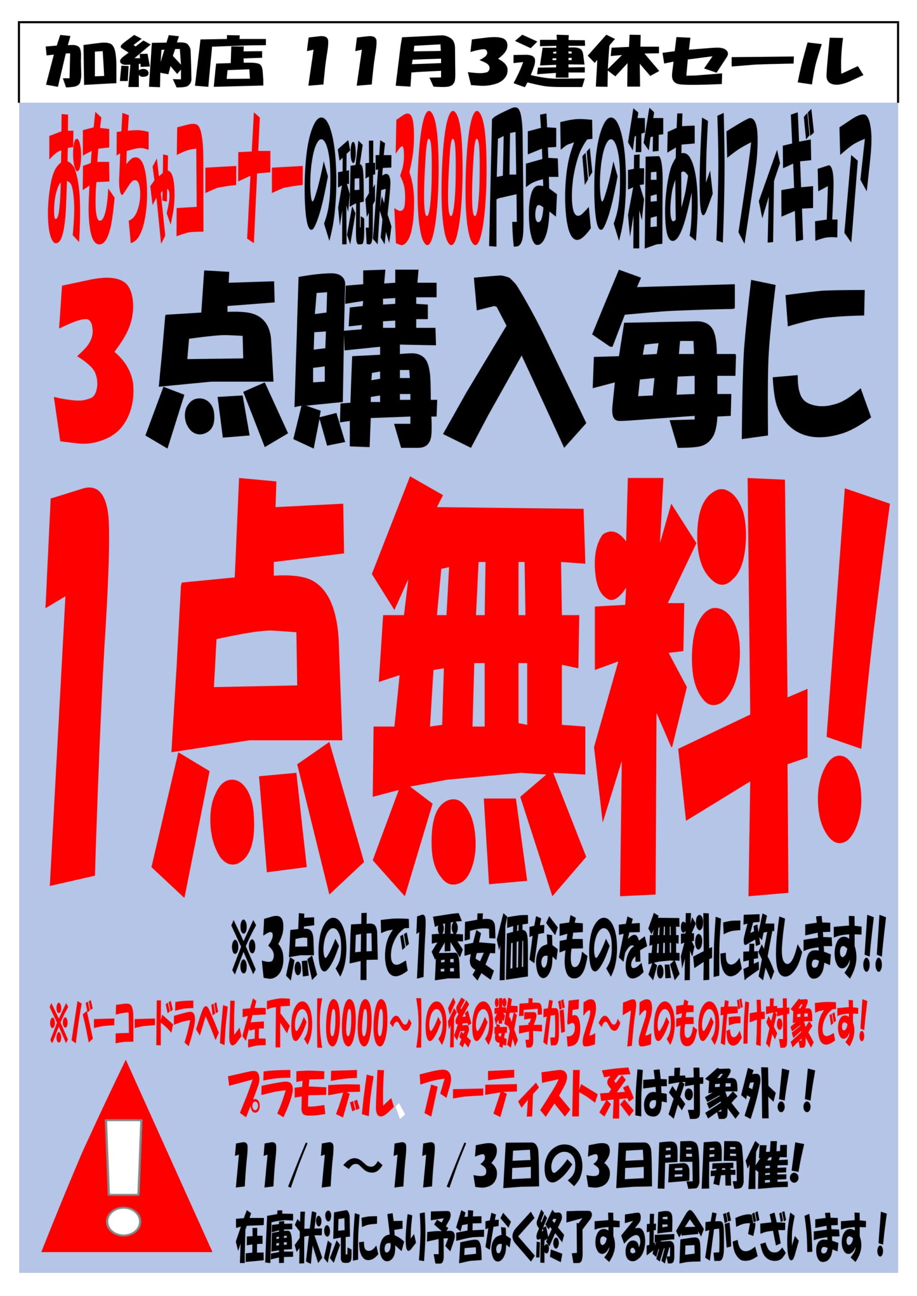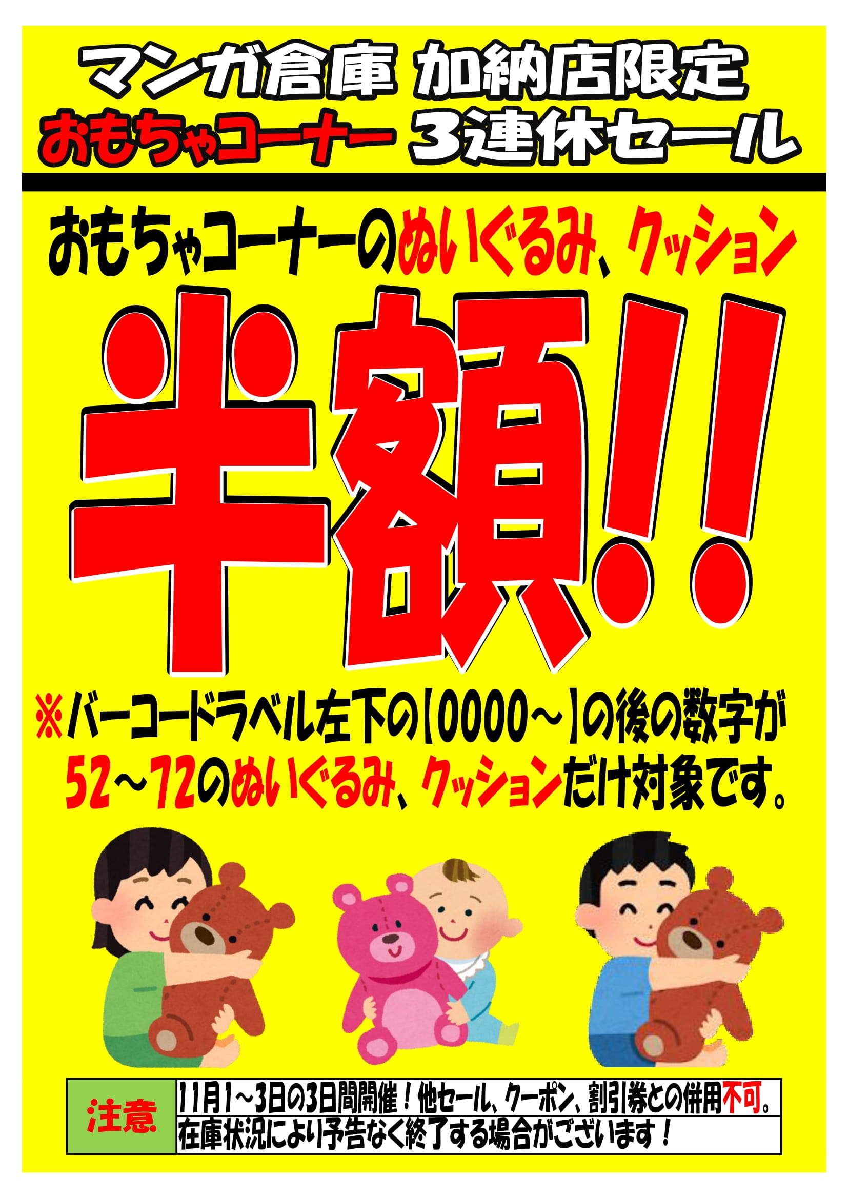 【加納店】《11月1日~3日》フィギュア・ぬいぐるみセール開催