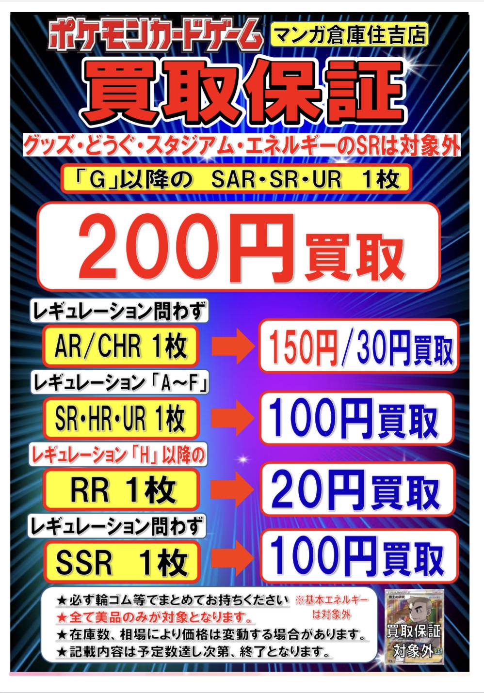 ★【住吉買取店】ポケモンカード買取保証変更のお知らせ★ new 新着情報 買取情報 マンガ倉庫住吉買取店 トレカ 2025年11月14日 ポケモンカード買取保証ですが SR以上の在庫が集まりましたので保証金額を変更致しました! ※2025/11/14現在の価格となります。 在庫状況などによってお値段が変動いたします。予めご了承ください。 **************** こちら↓もぜひチェックしてみてくださいね♪(*´▽`*) ・最新のイベント情報はこちら ・最新の買取情報はこちら