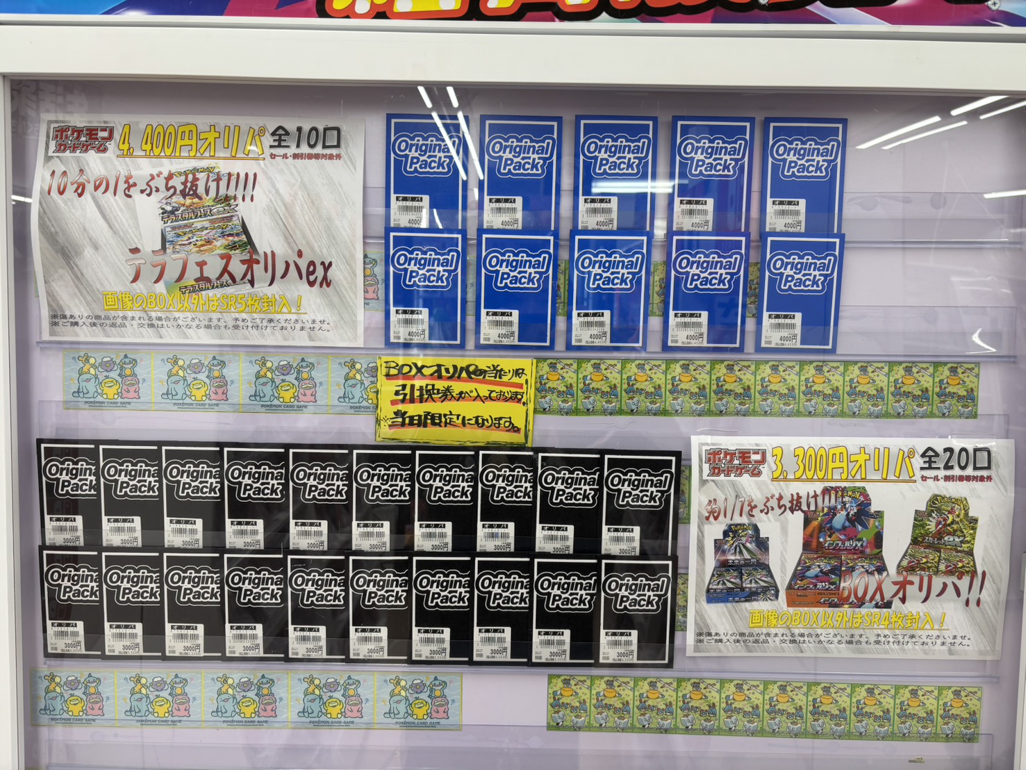 【住吉買取店】ポケモンカード 4,400円10口の1テラフェスオリパex ・3,300円20口BOXオリパ 販売しております! 新着情報 マンガ倉庫住吉買取店 トレカ 2025年11月28日 ポケモンカード ・4,400円10口の1テラフェスオリパex ・3,300円20口BOXオリパ 販売しております! 豪運をお持ちの方のチャレンジお待ちしております!!