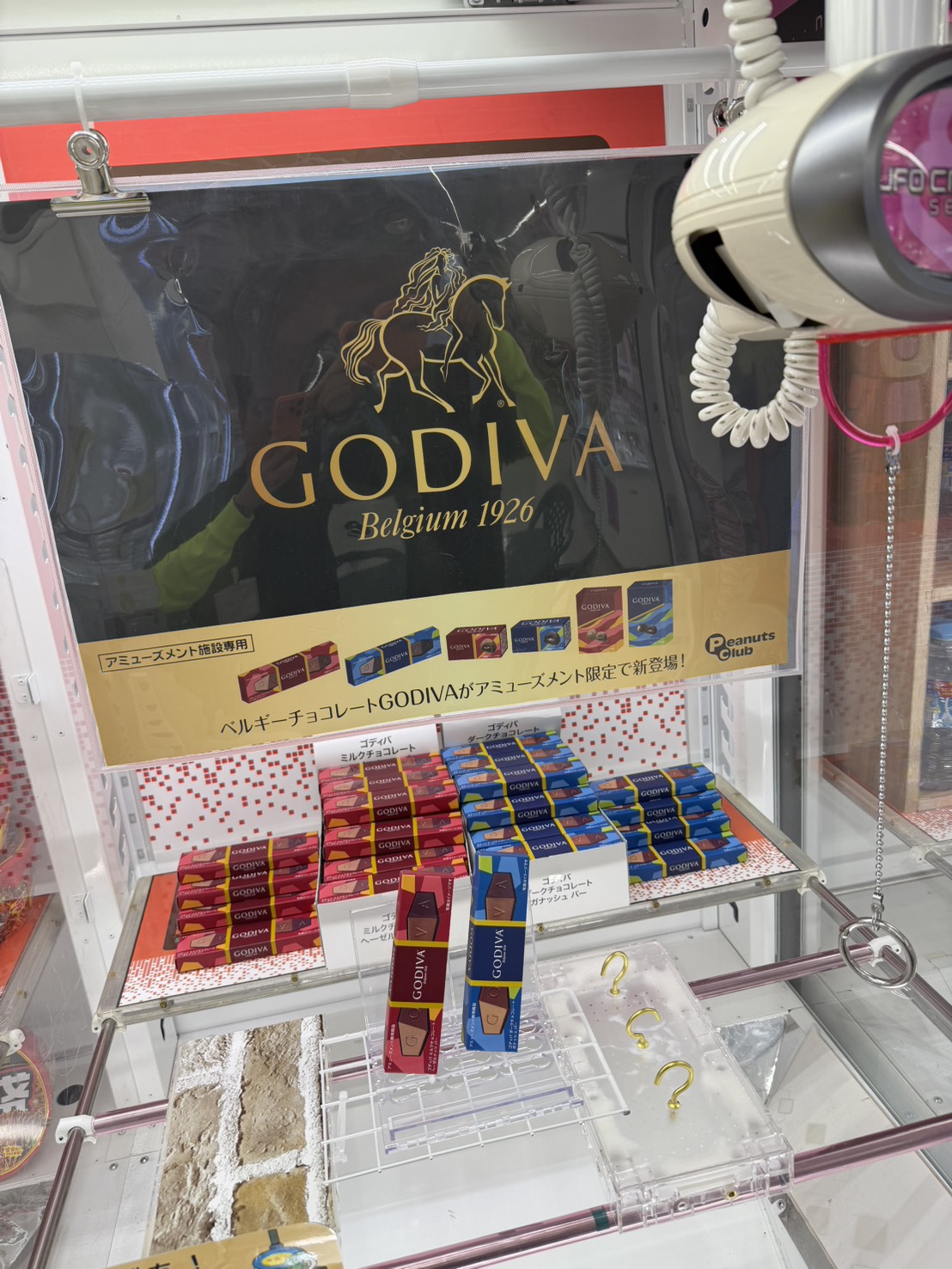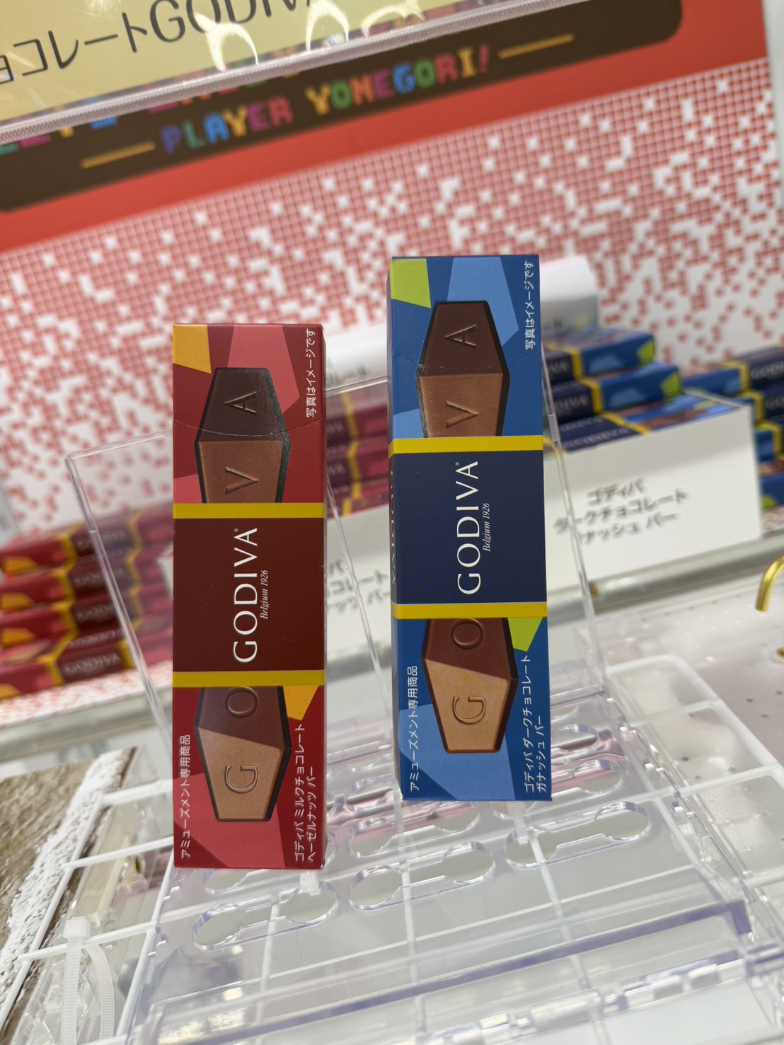 【日南店】GODIVAから アミューズメント限定景品登場です! 新着情報 トレトレ倉庫日南店 アミューズ 2025年12月15日 高級チョコレートでお馴染みの GODIVA🍫から アミューズメント限定景品登場❣️ ミルクチョコレートヘーゼルナッツバー ダークチョコレートガナッシュバー の2味を同時に楽しめる設定です😋💖 ぜひご賞味あれ‼️