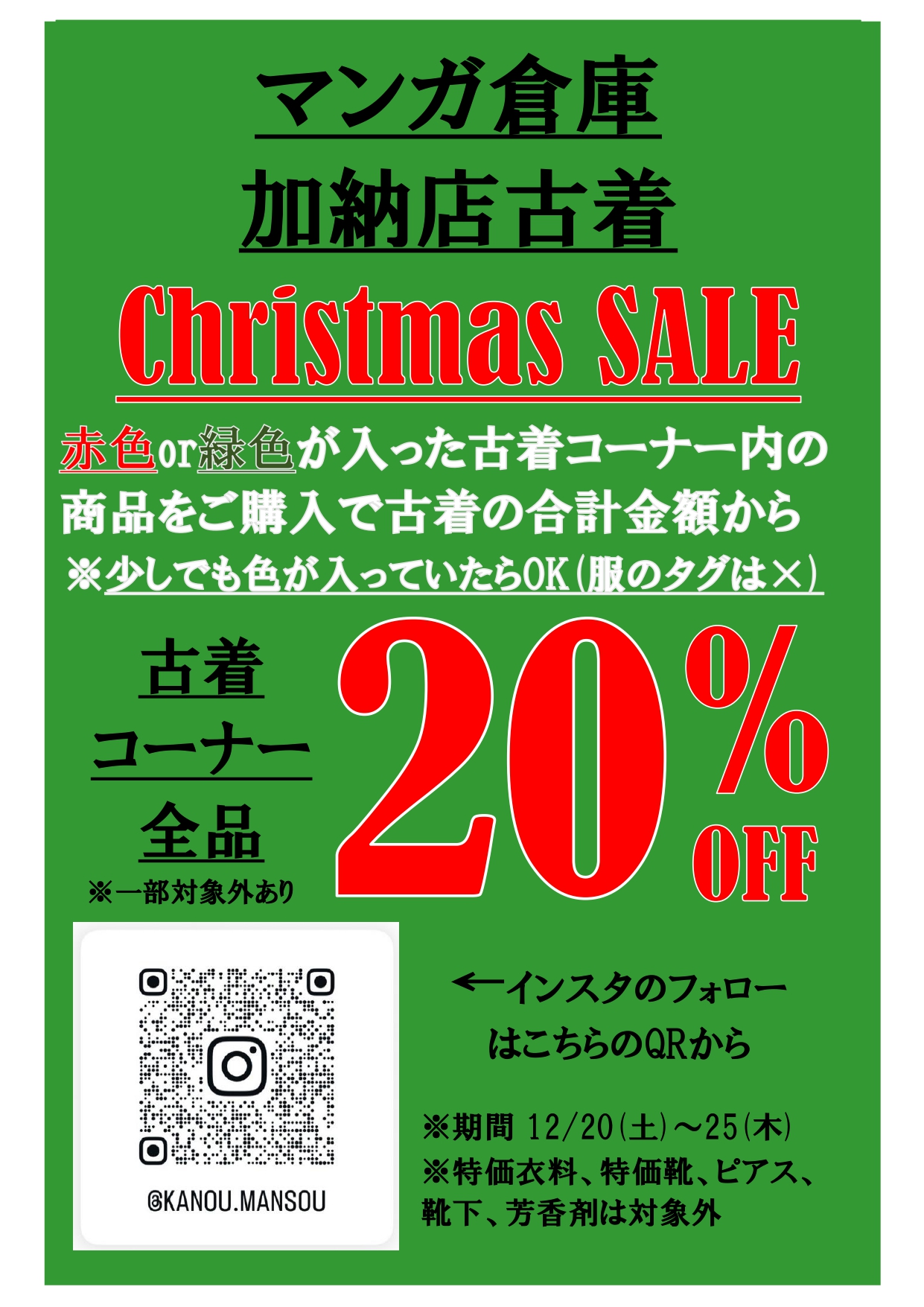 【加納店】12月20日から25日まで!古着クリスマスセール開催! new 新着情報 イベント情報 マンガ倉庫加納店 ファッション 2025年12月20日 12月20日から25日まで!古着クリスマスセール開催! **************** こちら↓もぜひチェックしてみてくださいね♪(*´▽`*) ・最新のイベント情報はこちら ・最新の買取情報はこちら