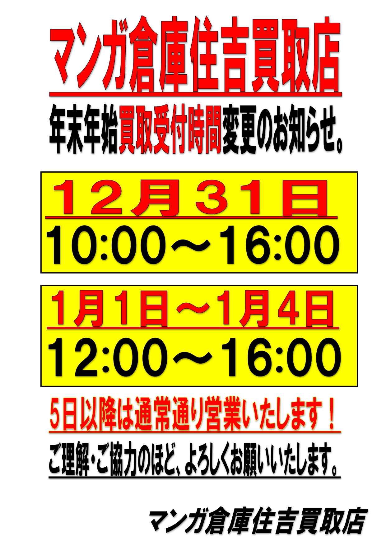 【住吉買取店】年末年始買取受付時間のご案内です。