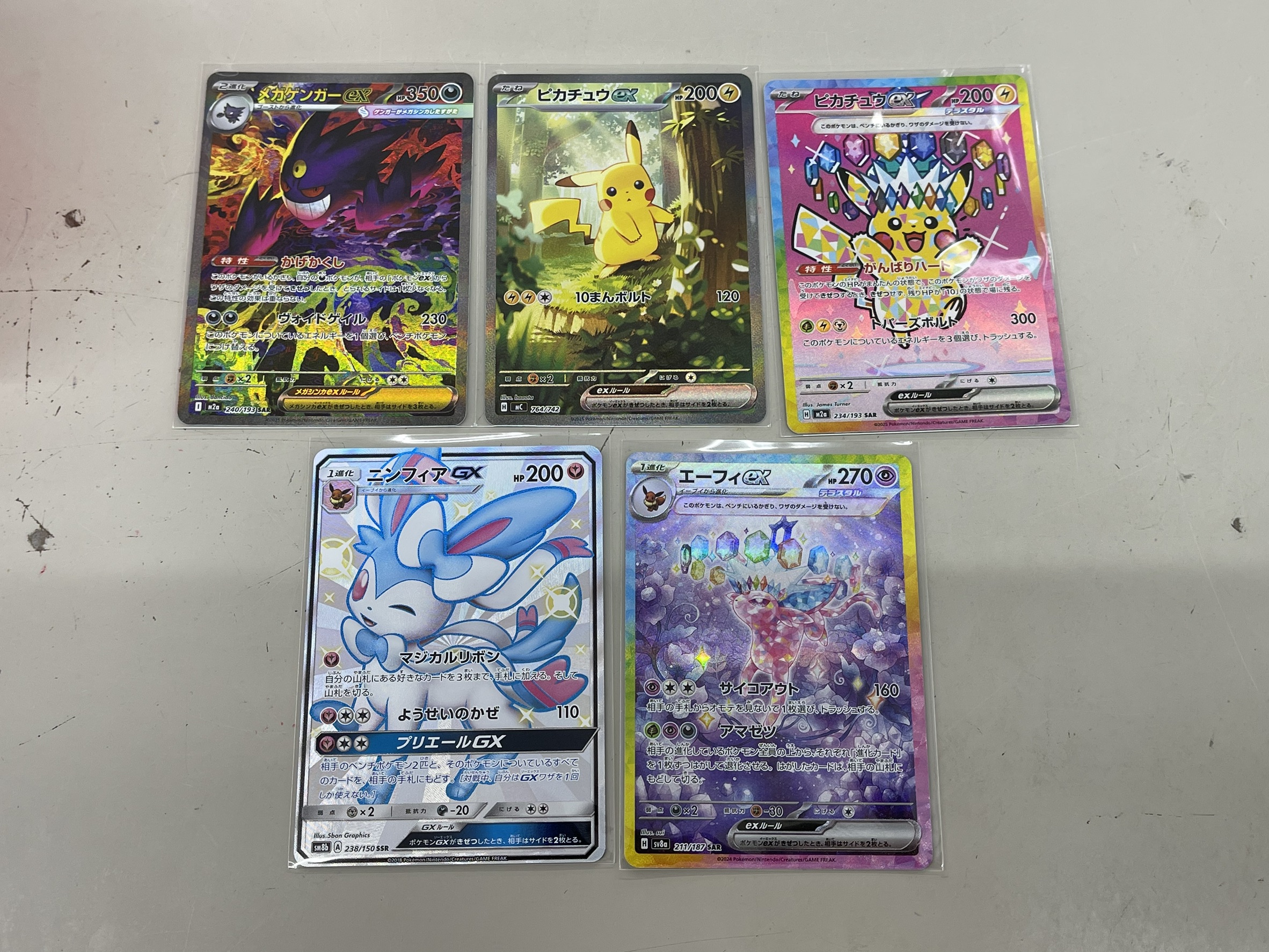 【日南店】ポケモンカード買取情報■ 新着情報 こんなの買取りました トレトレ倉庫日南店 トレカ 2026年1月11日 ★買取情報★ ポケカ メガゲンガーex SAR ピカチュウex SAR仕様 ピカチュウex SAR ニンフィアGX SSR エーフィex SAR 買取お持ちいただきました!