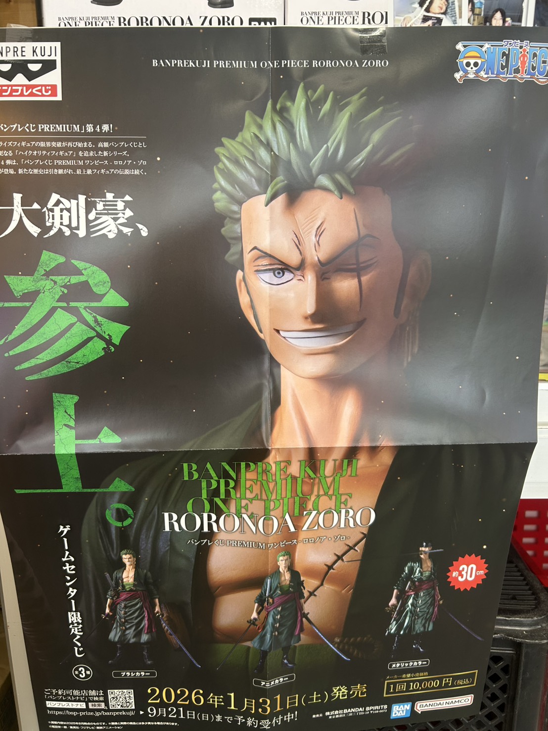 【加納店】アソビバ景品入荷情報です!■ 新着情報 マンガ倉庫加納店 アミューズ 2026年1月30日 アソビバ景品入荷情報です! ・BANPRE KUJI PREMIUM ONE PIECE RORONOA ZORO 【全3種】 入荷いたしました! 明日1/31(土)10時より アミューズメントカウンターで販売を行います! 数に限りがございますのでお求めの方はお早めにお越しくださいませ!