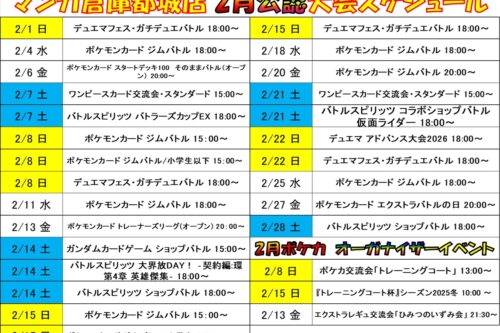 ★カード★〈新品販売予定〉2月入荷分更新しました! new 新着情報 マンガ倉庫加納店 マンガ倉庫住吉買取店 マンガ倉庫都城店 トレカ 2026年2月1日 2月入荷予定の新作カード一覧更新しました👍💥 ぜひご覧くださ~い!!! ★イベントカレンダーは👉こちら★
