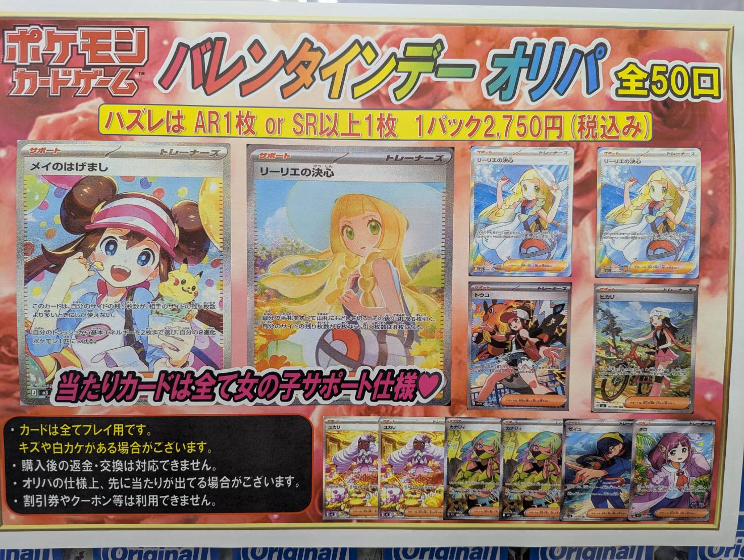 【住吉買取店】ポケモンカード バレンタインデー オリパ 販売スタート致しました!! 新着情報 マンガ倉庫住吉買取店 トレカ 2026年2月11日 住吉店 ポケモンカード バレンタインデー オリパ 販売スタート致しました!! 当たりカード全て女の子サポート仕様です!!