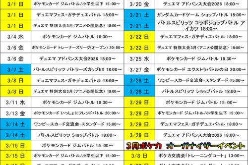 ★カード★〈新品販売予定〉3月入荷分更新しました! new 新着情報 マンガ倉庫加納店 マンガ倉庫住吉買取店 マンガ倉庫都城店 トレカ 2026年3月1日 3月入荷予定の新作カード一覧更新しました👍💥 ぜひご覧くださ~い!!! ★イベントカレンダーは👉こちら★