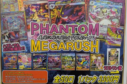 【住吉買取店】ポケモンカード 全50口 1パック3300円 PHANTOM MEGARUSH 販売スタート致しました。