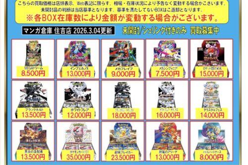 【住吉買取店】ポケモンカード BOX買取金額を更新致しました。