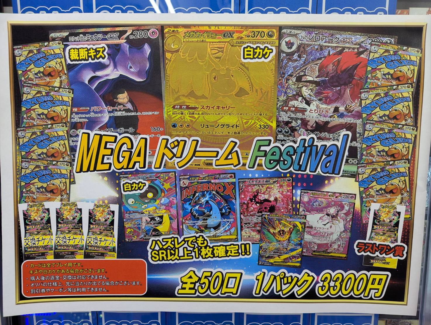 【住吉買取店】ポケモンカード 全50口 1パック3300円 MEGAドリームFestival 販売スタート致しました!! 新着情報 マンガ倉庫住吉買取店 トレカ 2026年3月10日 ポケモンカード 全50口 1パック3300円 MEGAドリームFestival 販売スタート致しました!!