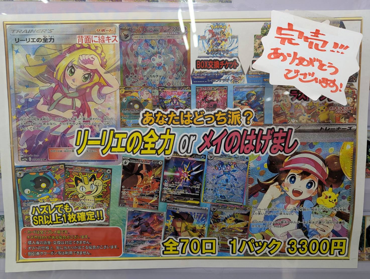 上記のオリパ完売致しました!!