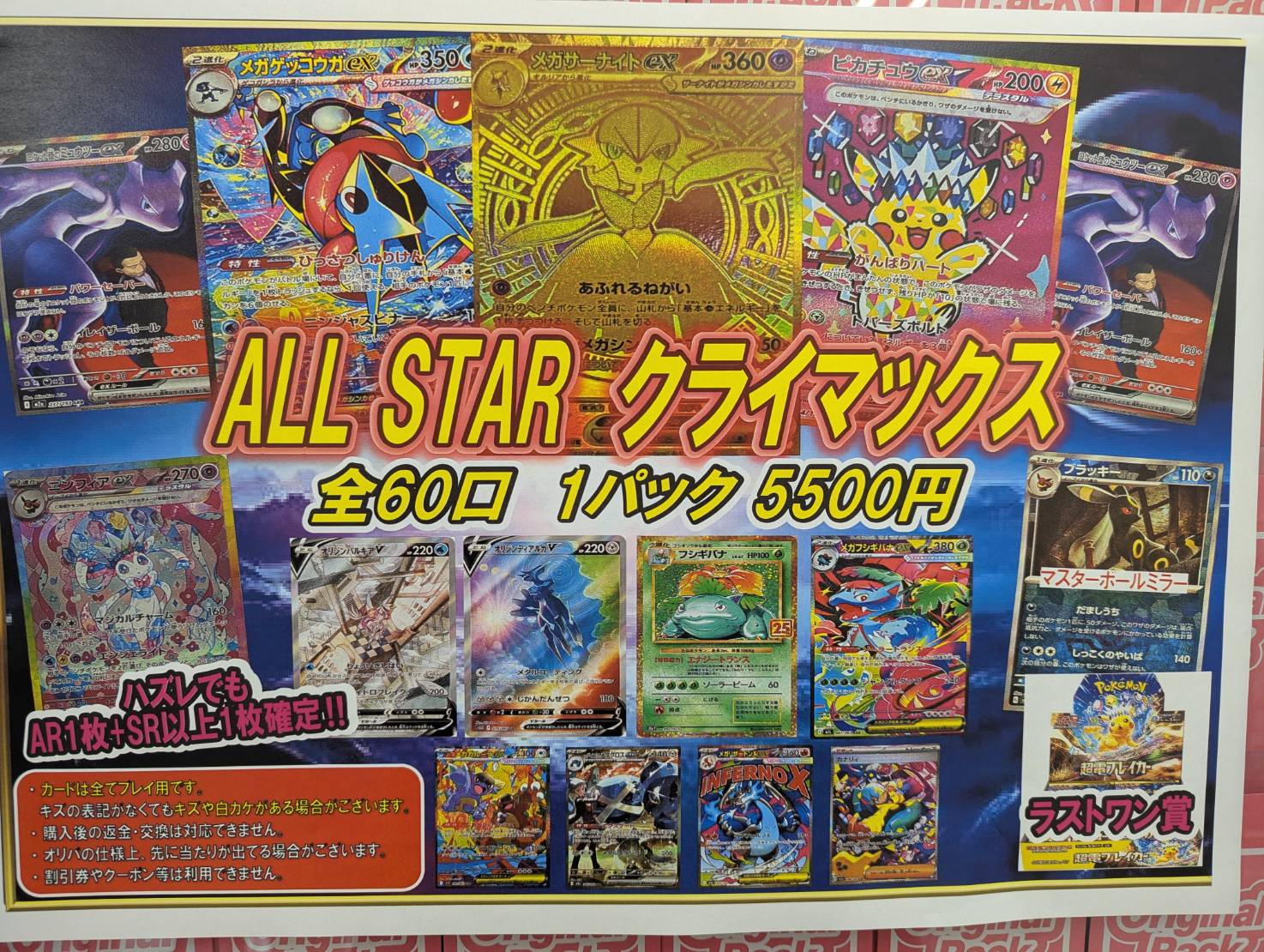 【住吉買取店】ポケモンカード ALL STAR クライマックス 販売スタート致しました!!■ 新着情報 マンガ倉庫住吉買取店 ガチャ トレカ 2026年3月28日 ポケモンカード 全60口 1パック5500円 ALL STAR クライマックス 販売スタート致しました!!