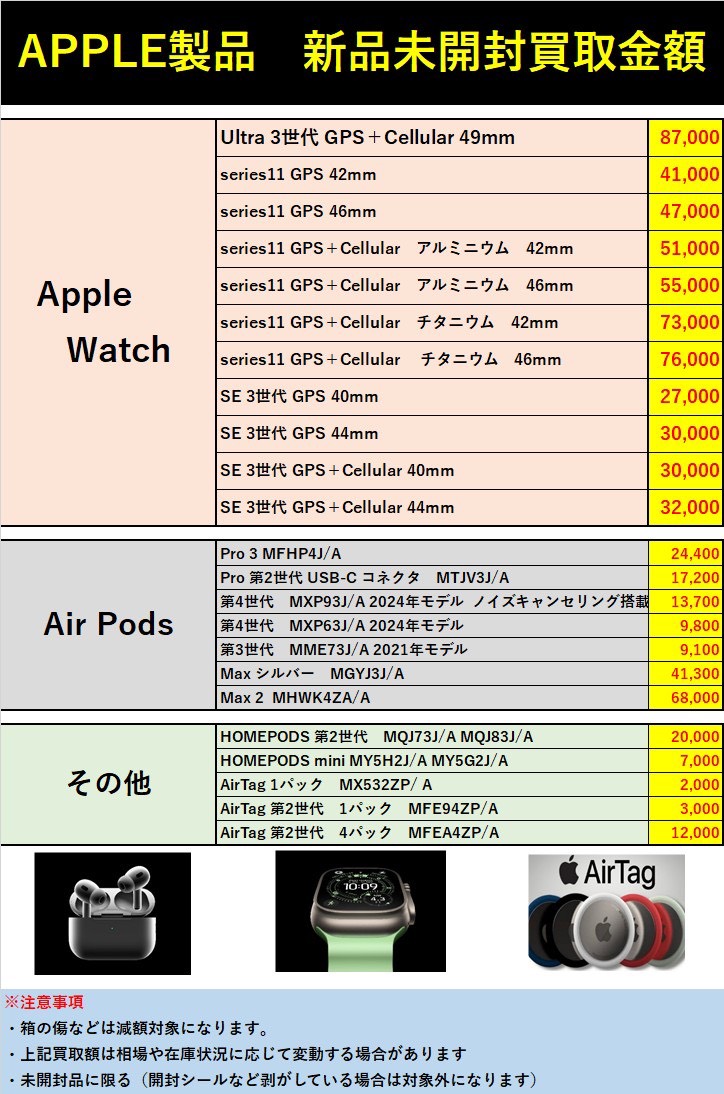 ★APPLE製品 新品未開封買取金額★