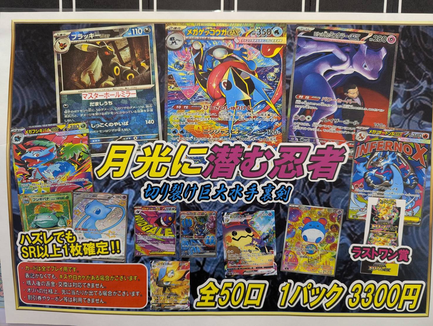 【住吉買取店】ポケモンカード 販売スタート致しました!!■ 新着情報 マンガ倉庫住吉買取店 トレカ 2026年4月3日 住吉店 ポケモンカード 全50口 1パック3300円 電撃ビリビリにご注意! ピカチュウex争奪戦 販売スタート致しました!! ポケモンカード 全50口 1パック3300円 月光に潜む忍者 販売スタート致しました!! ポケモンカード 全12口 1パック22000円 勝ち取れ!! ゴールドラッシュ 販売スタート致しました!!