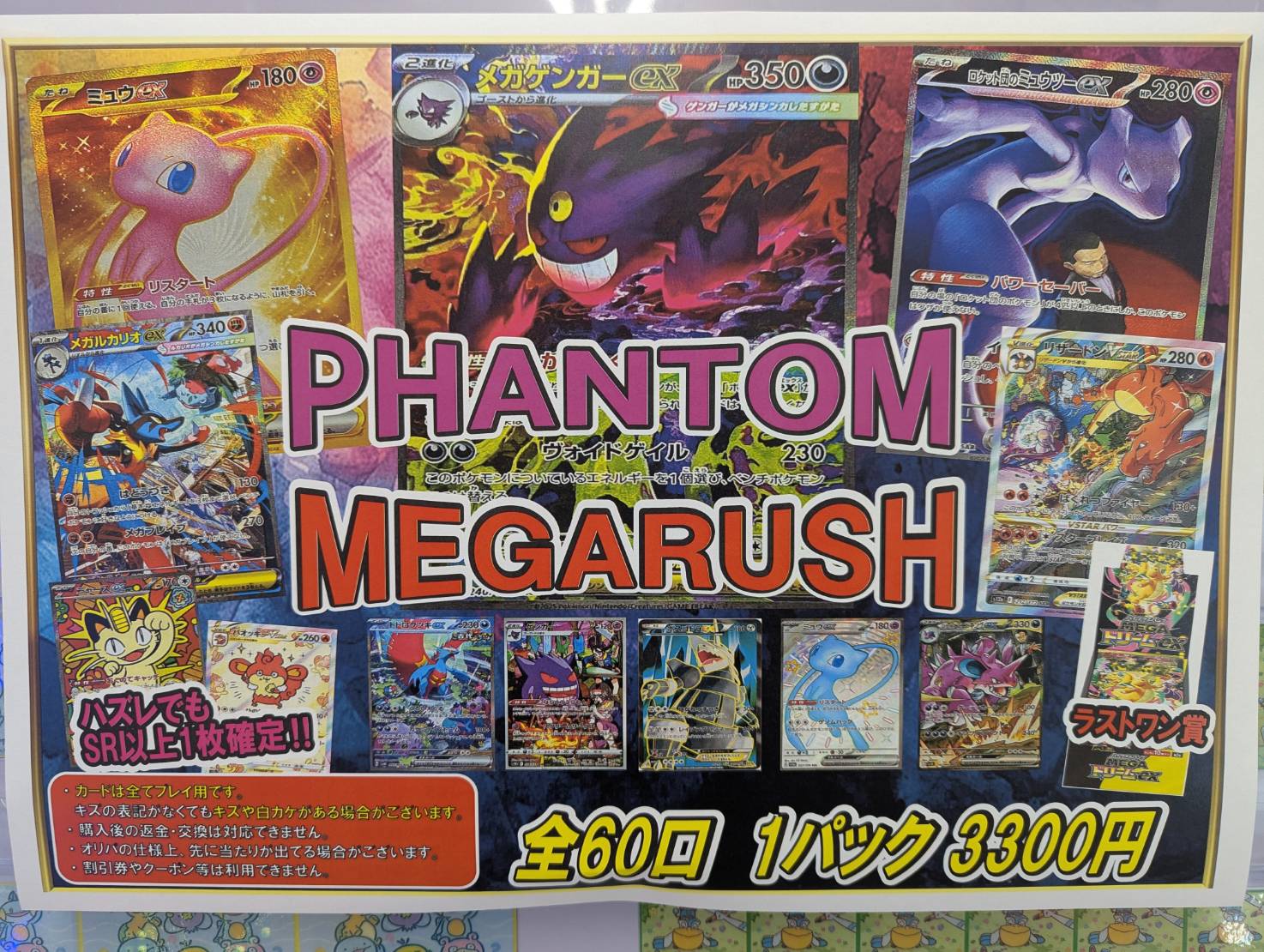 【住吉買取店】ポケモンカード PHANTOM MEGA RUSH 完売致しました!! 新着情報 マンガ倉庫住吉買取店 トレカ 2026年4月9日 ポケモンカード PHANTOM MEGA RUSH 完売致しました!! たくさんのご購入ありがとうございます。