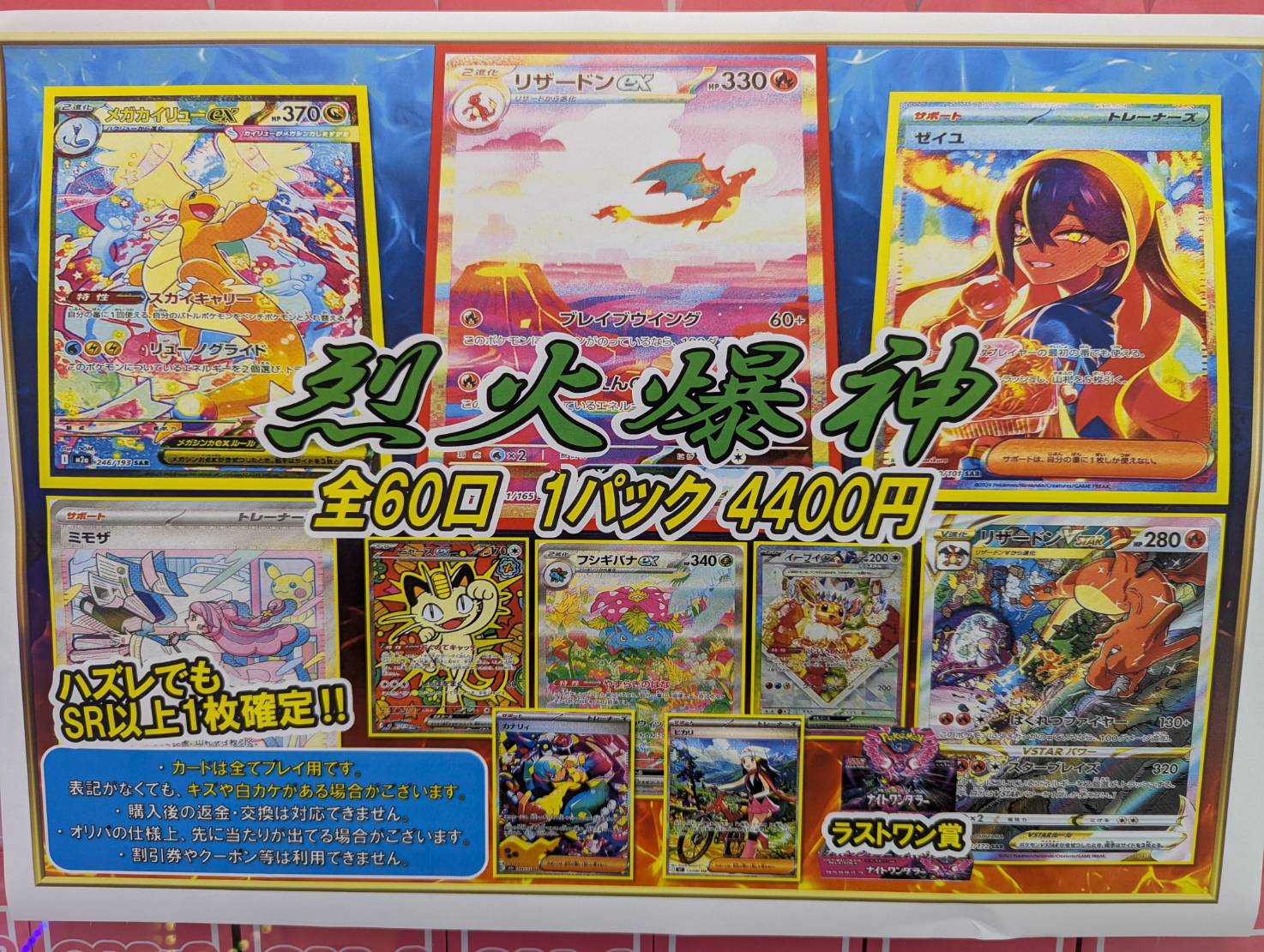 【住吉買取店】ポケモンカード 烈火爆神 1パック4400円 販売開始! new 新着情報 マンガ倉庫住吉買取店 トレカ 2026年4月10日 ポケモンカード 全60口 1パック4400円 烈火爆神 販売スタート致しました!!