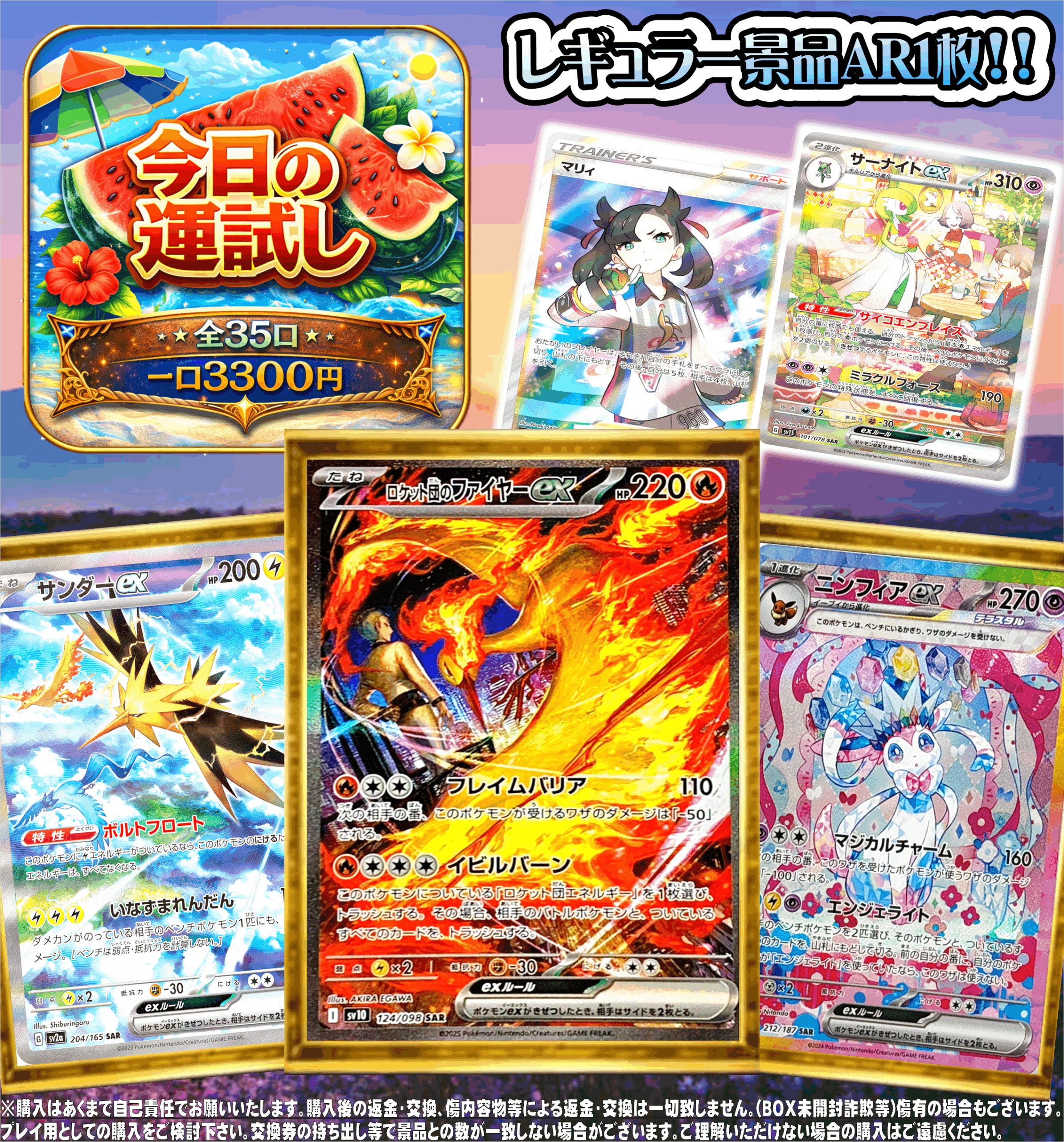 【加納店】超豪華トリプルSAR争奪 オリジナルパック 販売開始! 新着情報 マンガ倉庫加納店 トレカ 2026年4月15日 ⚡️本日発売開始⚡️ お待たせしました! 【超豪華トリプルSAR争奪 オリジナルパック】、ただいまより販売スタートです! 💥今回の大当たりは… 【ロケット団のファイヤー SAR】 【サンダー SAR】 【ニンフィア SAR】!!💥 悪に染まった伝説の炎、天空の雷帝、そして絆の化身を豪華に封入! ✅1口 3,300円 ✅限定 全35口 ✅AR1枚確定! 豪華ラインナップを手に入れるのは誰だ!?