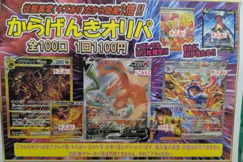【加納店】カノウ地方 オリジナルパック販売開始! new 新着情報 マンガ倉庫加納店 トレカ 2026年4月27日 ⚡️本日発売開始⚡️ お待たせしました! カノウ地方 オリジナルパック ただいまより 販売スタートです! 💥今回の大当たりは… ・メガリザードンXex SAR ・ゼクロムex BWR ・メガゲッコウガex SAR ・メガカイリューex SAR ・ピカチュウex UR ・マリィ SR(シャイニースターV) ・マリィのプライド SR ✅1口 1,100円 ✅全1,000口 豪華ラインナップを手に入れるのは誰だ!?