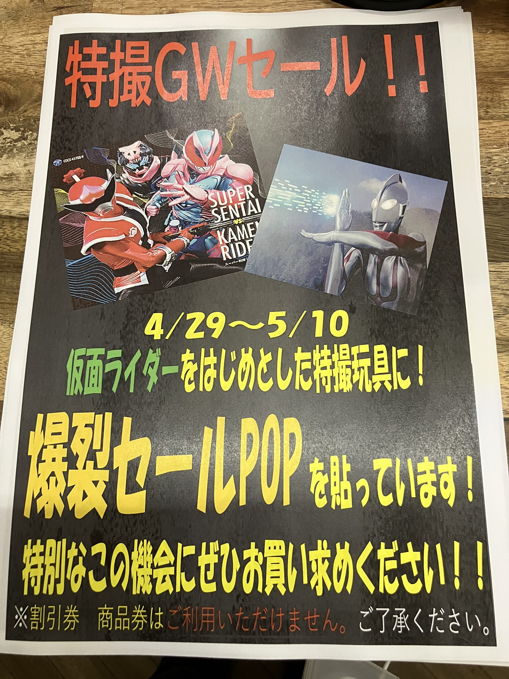 【都城店】《4/29~5/10》GW限定!爆裂セール! 新着情報 イベント情報 マンガ倉庫都城店 おもちゃ・ホビー 2026年4月29日 4/29~5/10の期間中! 仮面ライダーをはじめとした特撮おもちゃに爆裂セールPOPを貼っています!! お得なこの機会をお見逃し無く!! ご不明な点は店頭スタッフまで!!