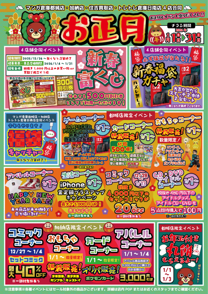 🎍🎉 お正月イベント開催 🎉🎍 マンガ倉庫都城店・加納店・住吉買取店 ト…