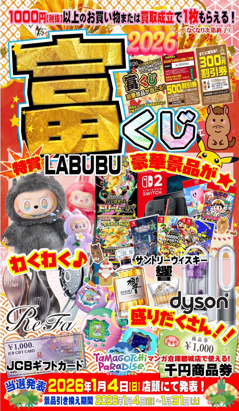 本日から富くじ配布致します❗️ 豪華景品はラブブやポケモンカードなど今…