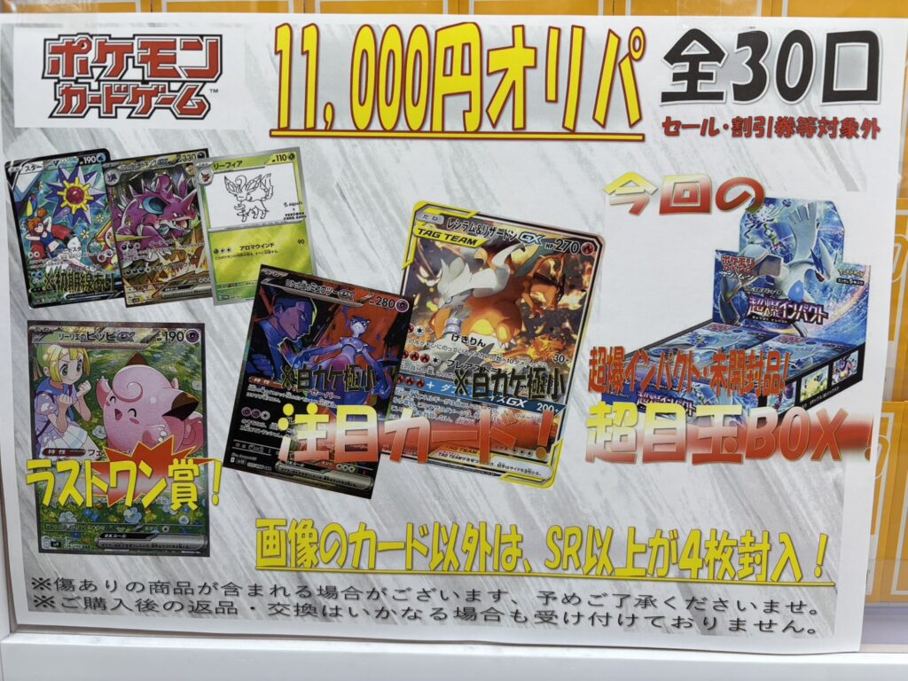 ポケモンカード11,000円オリパ展開中! 注目商品は ・超爆インパクト 未開…