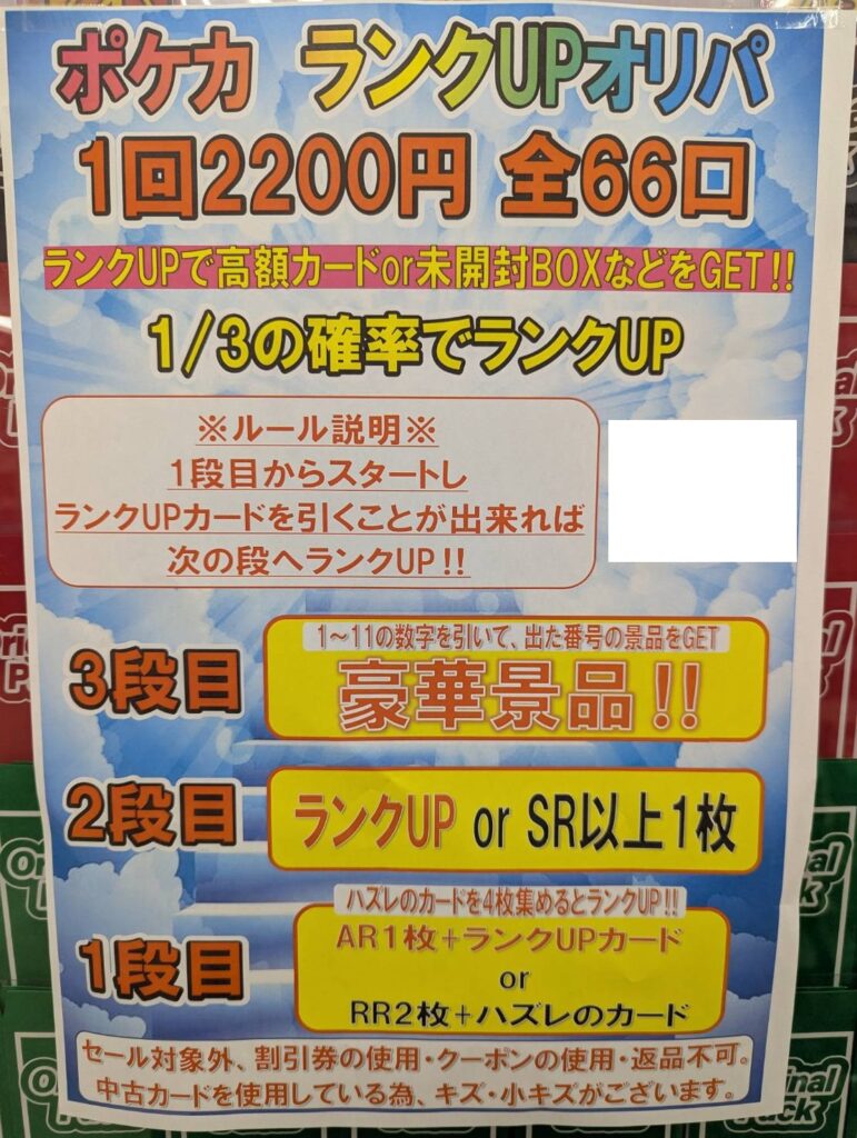 ポケモンカード ランクUPオリパ 当たり更新して 稼働スタート致しました!…
