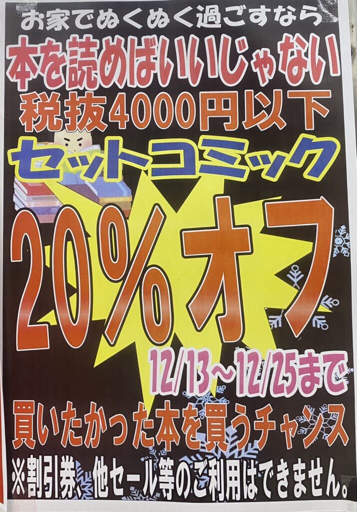 セットコミック クリスマスセール中! 税抜4000以下のセットコミックが20…