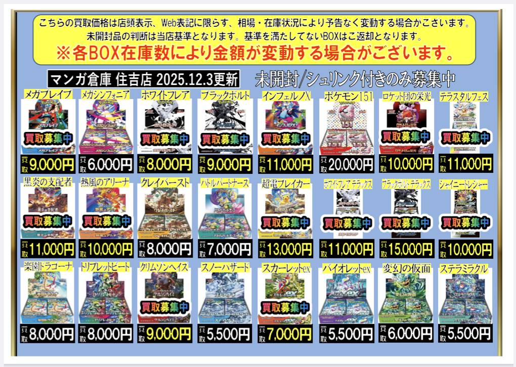 ポケモンカード BOX買取表になります 買取募集中です!! お待ちしており…