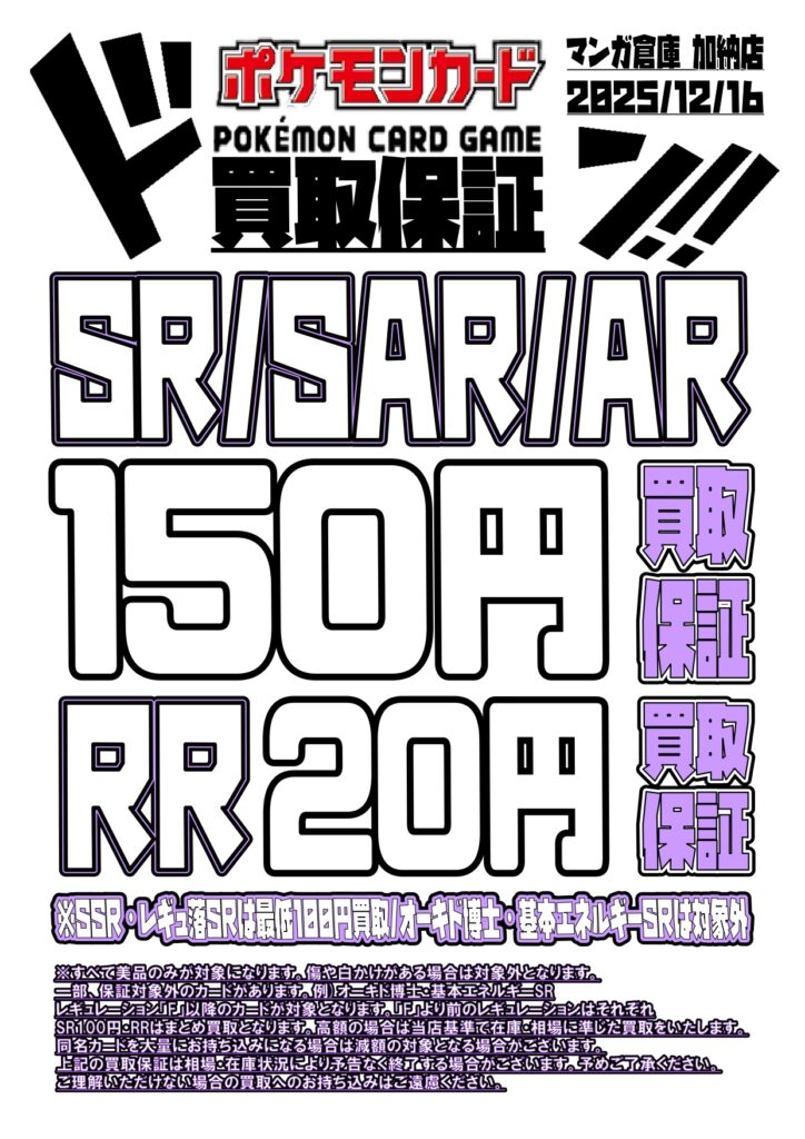 ケモンカード SR/SAR/AR 買取保証 更新しました! ※2025/12/16現在の価格…