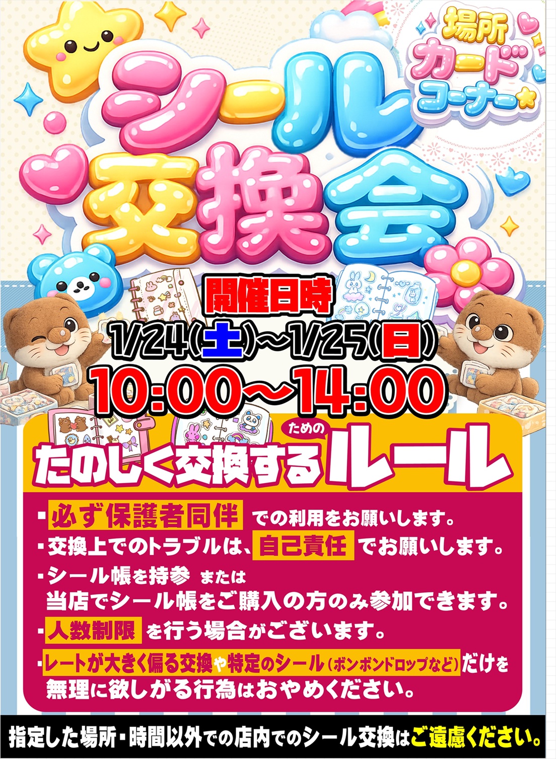 お客様達で楽しくシール交換出来る交換会を開催致します! シール帳を持参…