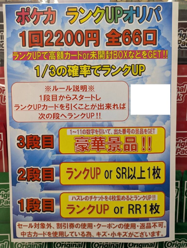 ポケモンカード 2200円 ランクUPオリパ 販売スタート致しました。