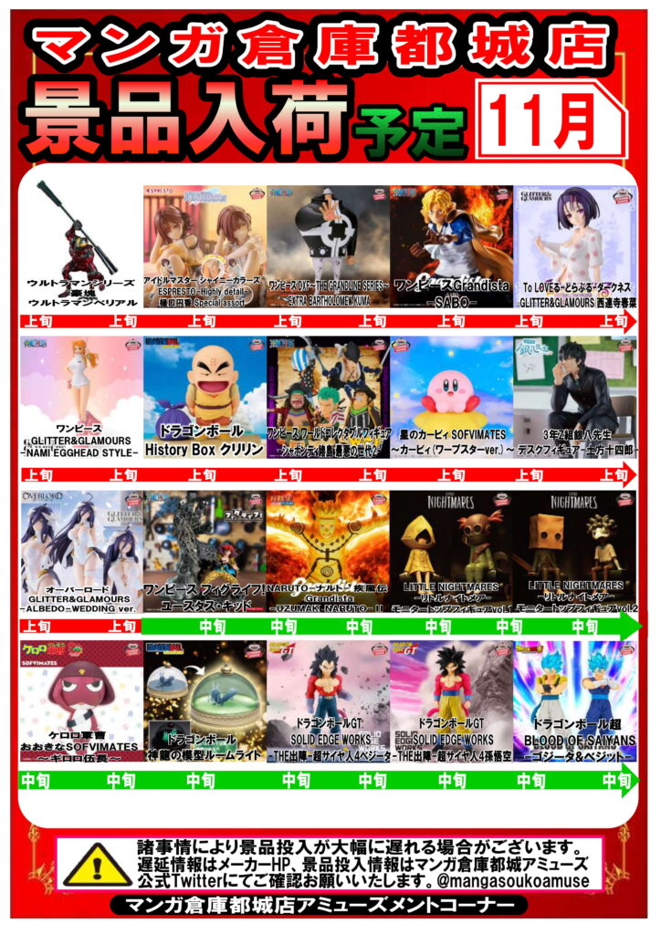 11月入荷予定のアミューズ景品一覧更新しました👍💥 ぜひご覧くださ~い!…