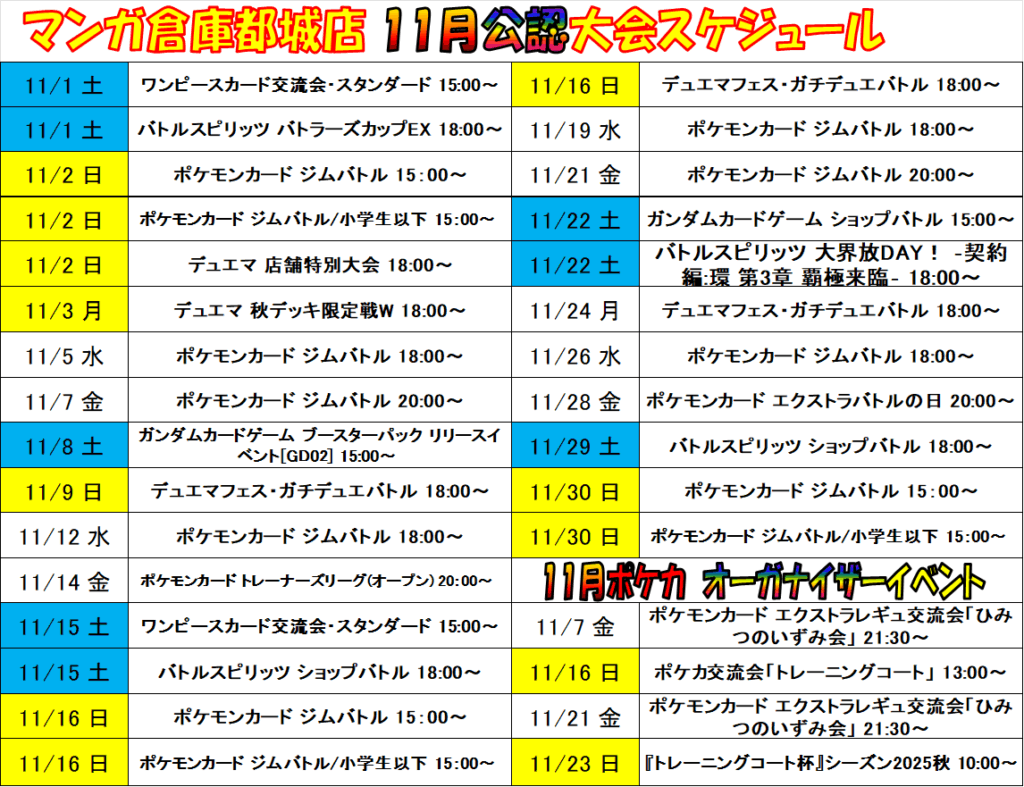 11月のカード大会予定表です😆