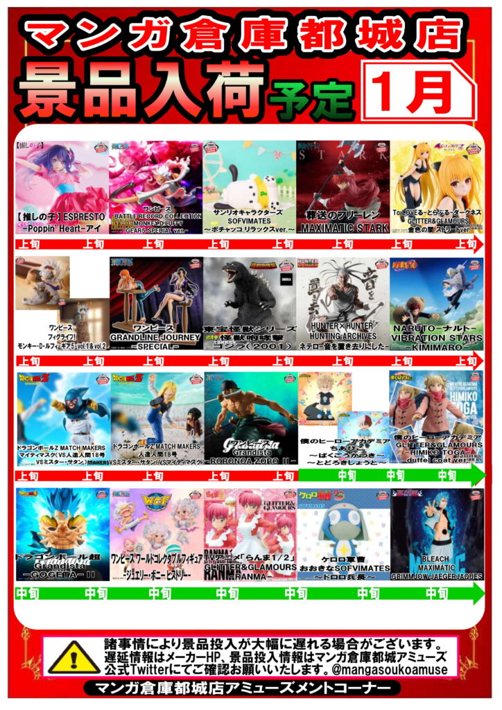 1月入荷予定のアミューズ景品一覧更新しました👍💥 ぜひご覧くださ~い!…